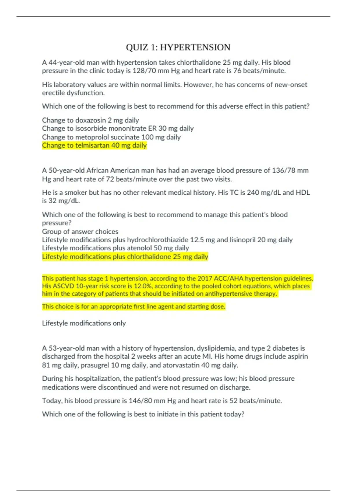 Lifestyle modifications plus chlorthalidone 25 mg daily