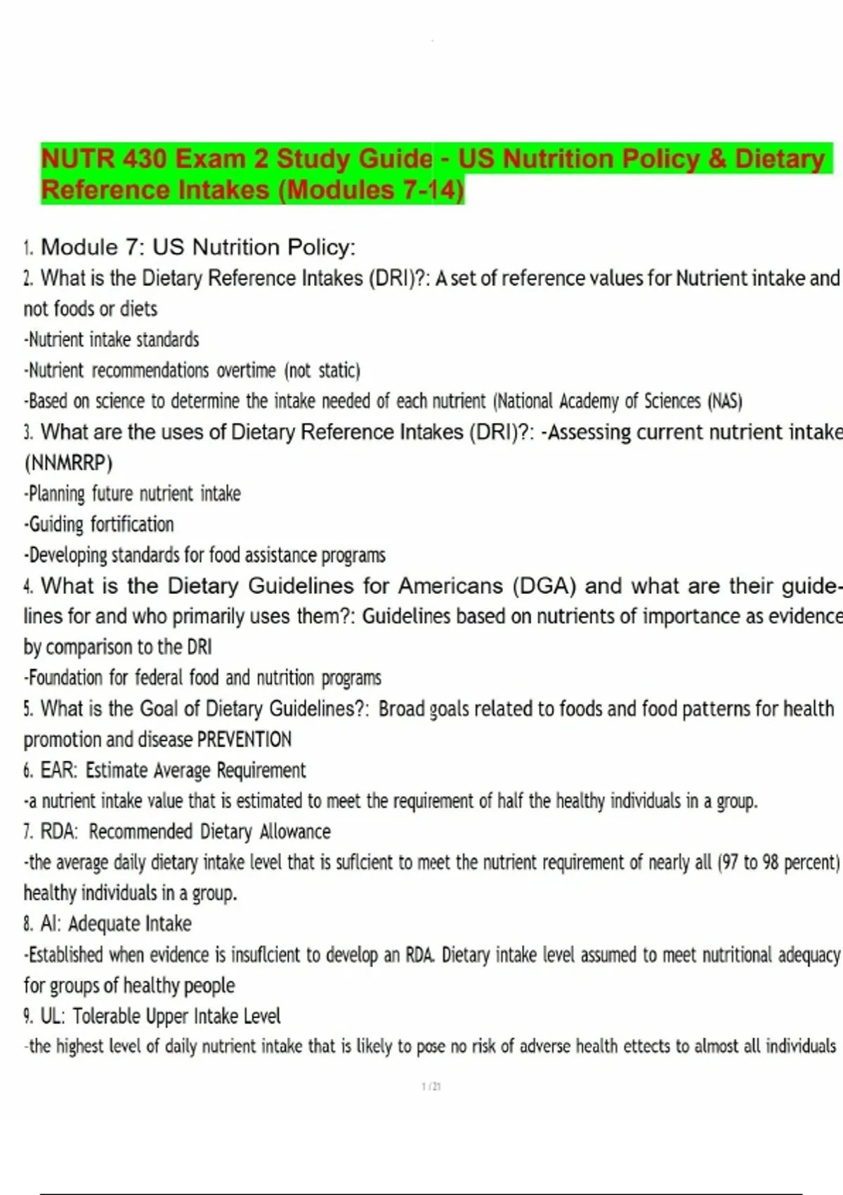 NUTR 430 Exam 2 Study Guide – US Nutrition Policy & Dietary Reference Intakes (Modules 7-14).pdf NUTR 430 Exam 2 Study Guide – US Nutrition Policy & Dietary Reference Intakes (Modules 7-14).pdf NUTR 430 Exam 2 Study Guide – US Nutrition Policy & Dietary Reference Intakes (Modules 7-14).pdf