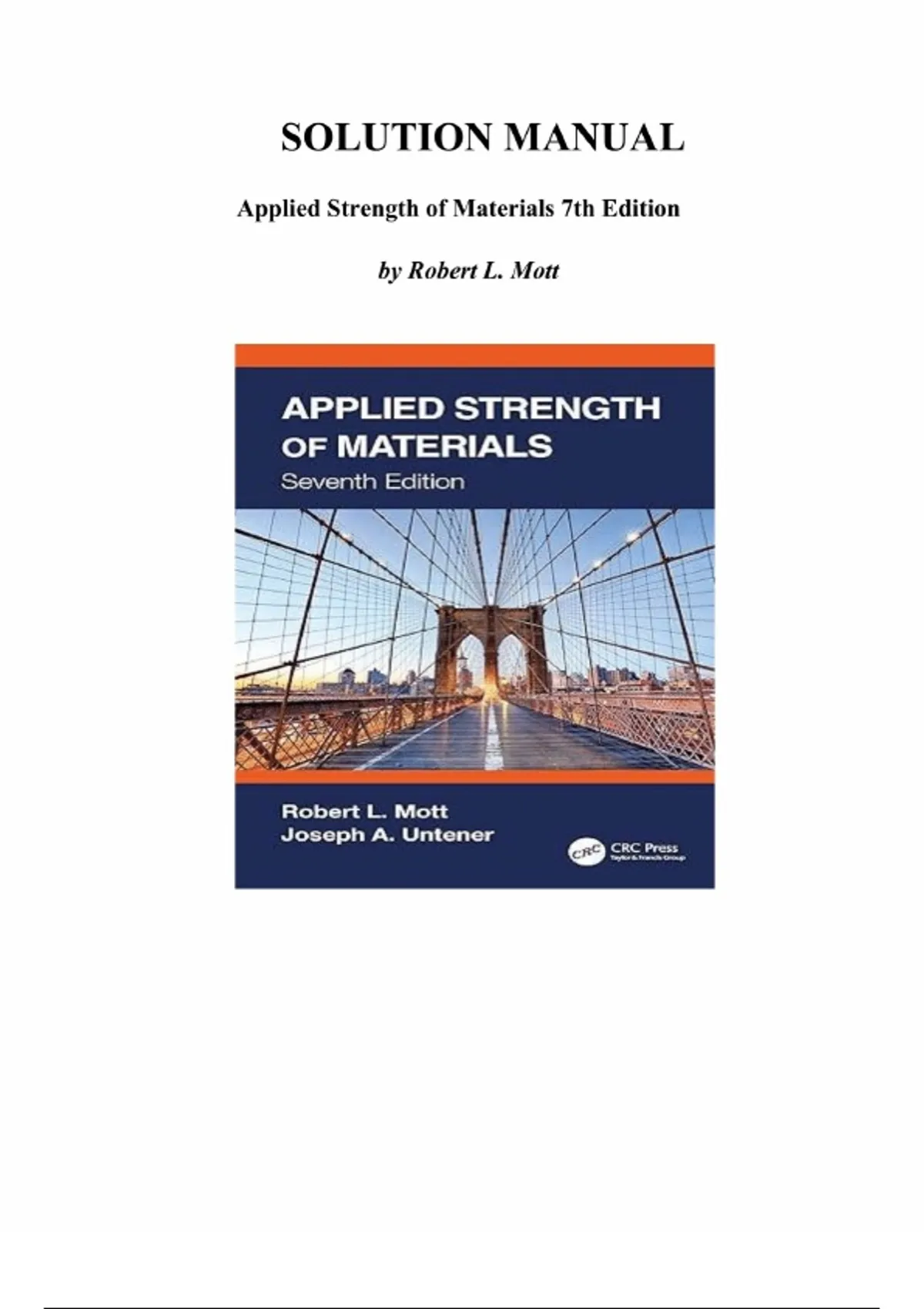This complete solutions manual for Applied Strength of Materials (7th Edition) by Robert L. Mott and Joseph A. Untener covers all 14 chapters. It provides detailed, step-by-step solutions to end-of-chapter problems, fully worked-out examples, and clear explanations of key strength of materials concepts. An essential companion for engineering students to support problem-solving, coursework, and exam preparation.