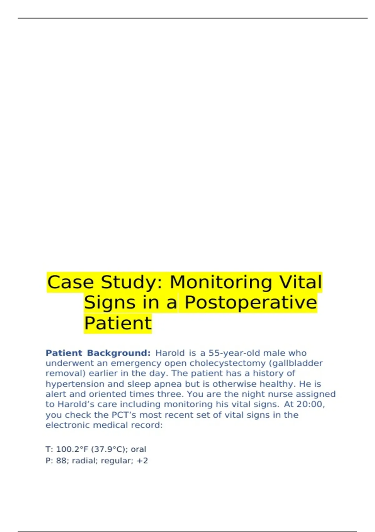 NRSG215 Case Study: Monitoring Vital Signs in a Postoperative Patient Fall 2025/NRSG215 Case Study: Monitoring Vital Signs in a Postoperative Patient Fall 2025
