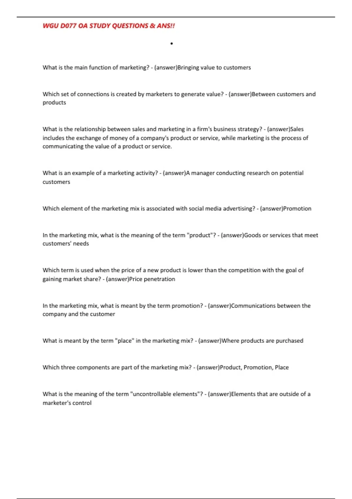 , WGU D077 OA STUDY QUESTIONS & ANS!!