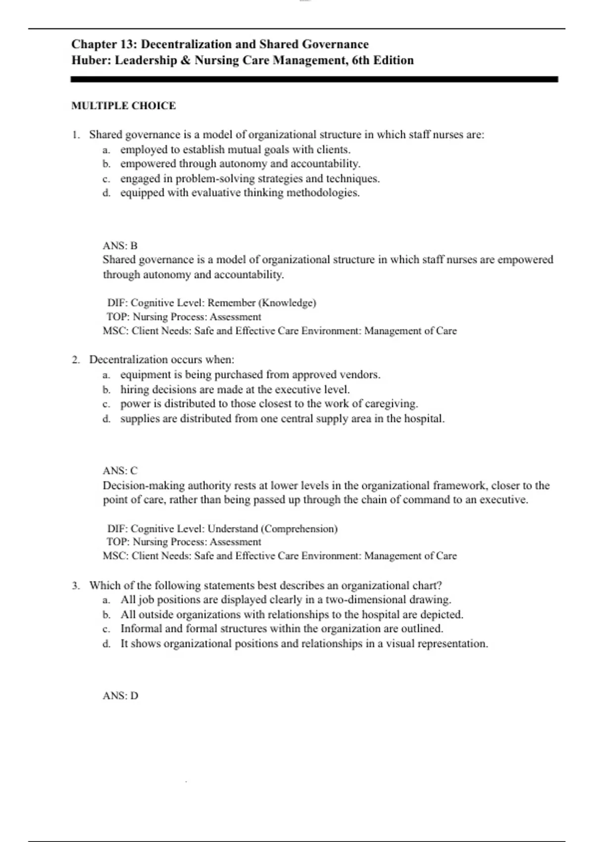 Chapter 13 Decentralization and Shared Governance Questions and Answers with Complete Solutions