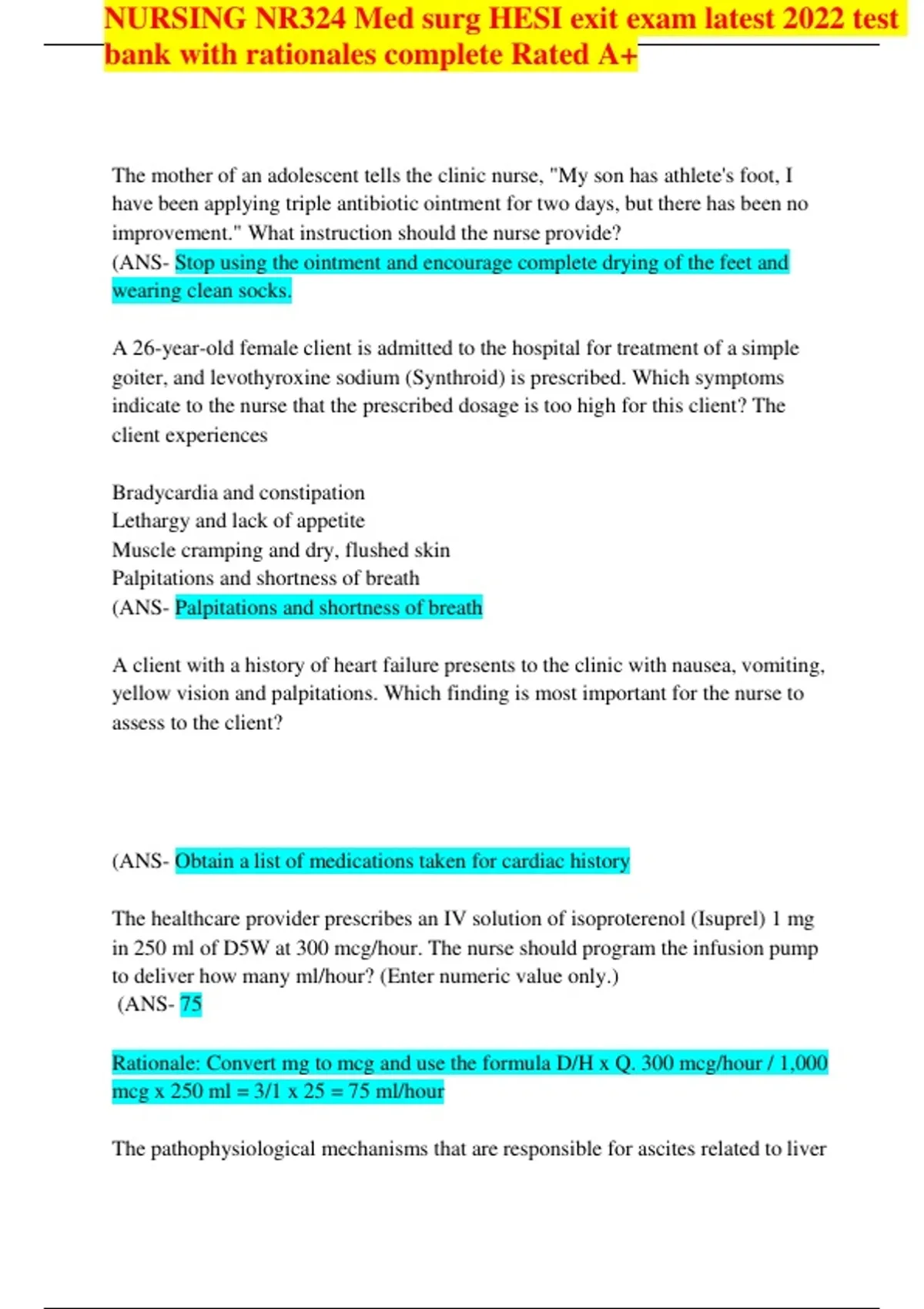 ,NURSING NR324 Med surg HESI exit exam latest 2022 test