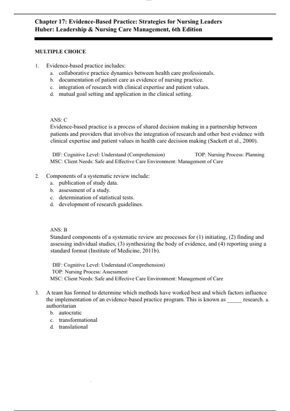 Chapter 17: Evidence-Based Practice: Strategies for Nursing Leaders