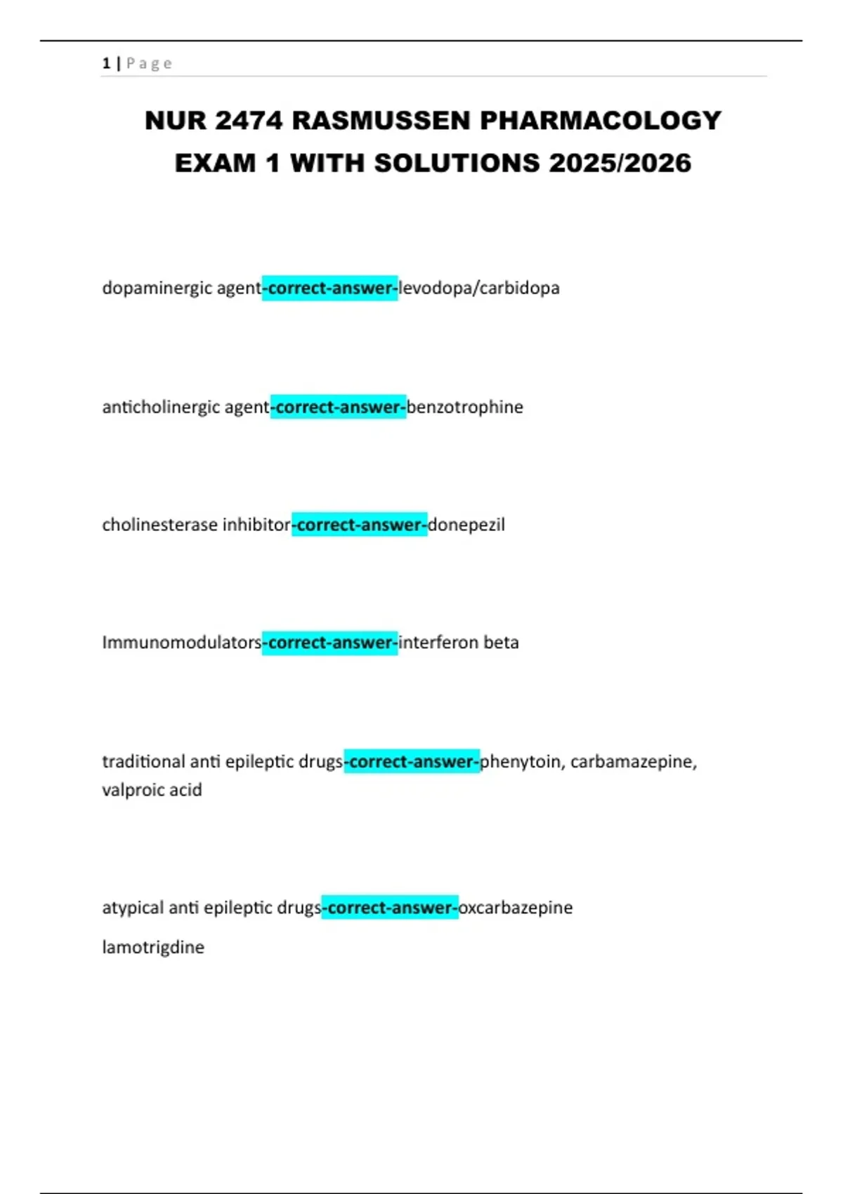NUR 2474 RASMUSSEN PHARMACOLOGY
