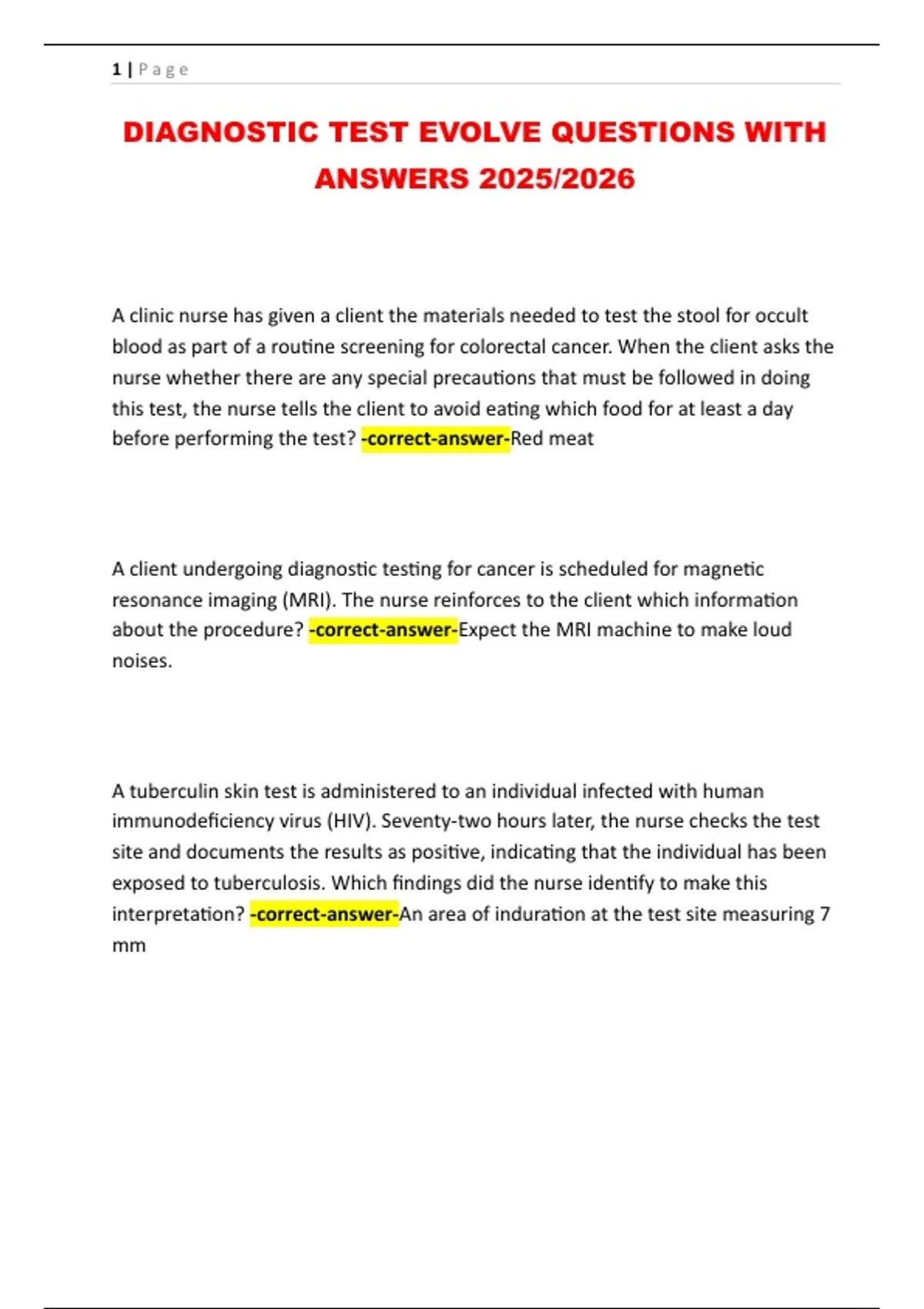 DIAGNOSTIC TEST EVOLVE QUESTIONS WITH ANSWERS 2025/2026
