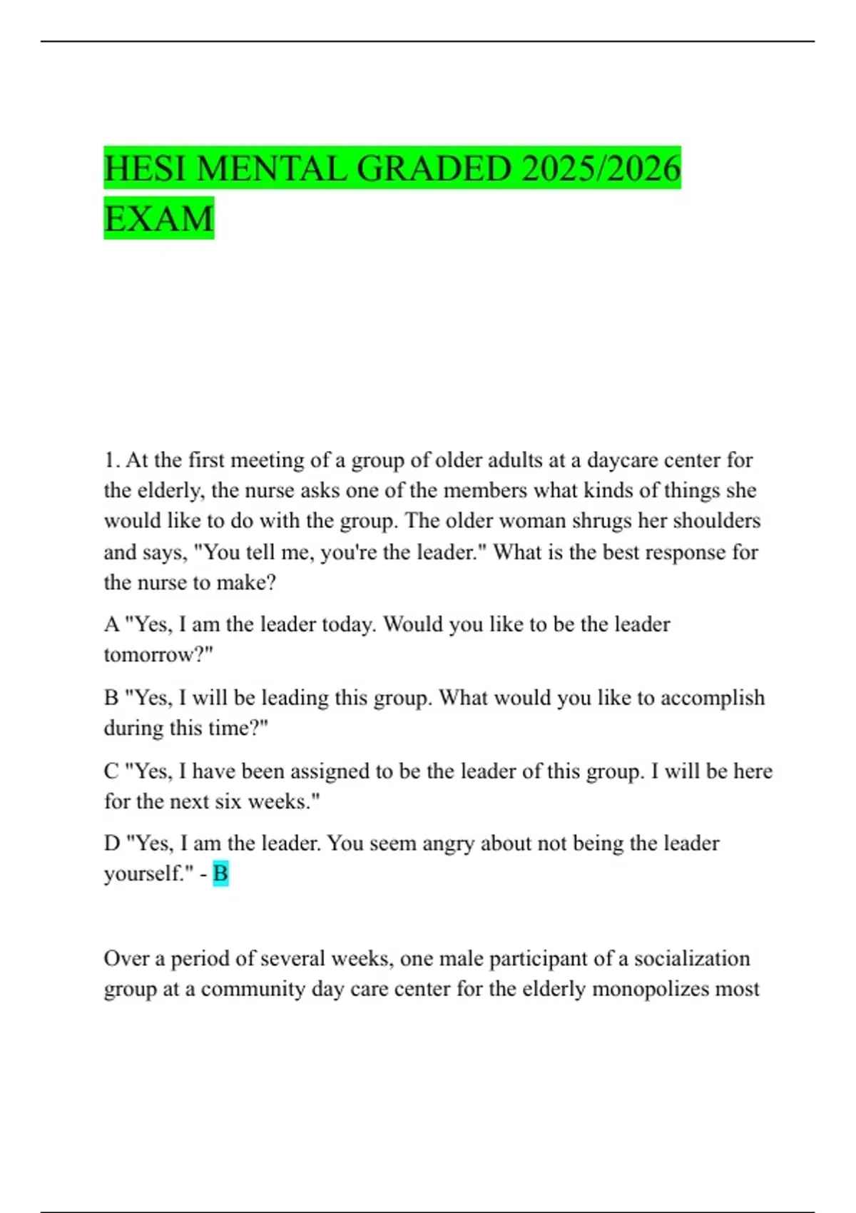 HESI MENTAL GRADED 2025/2026