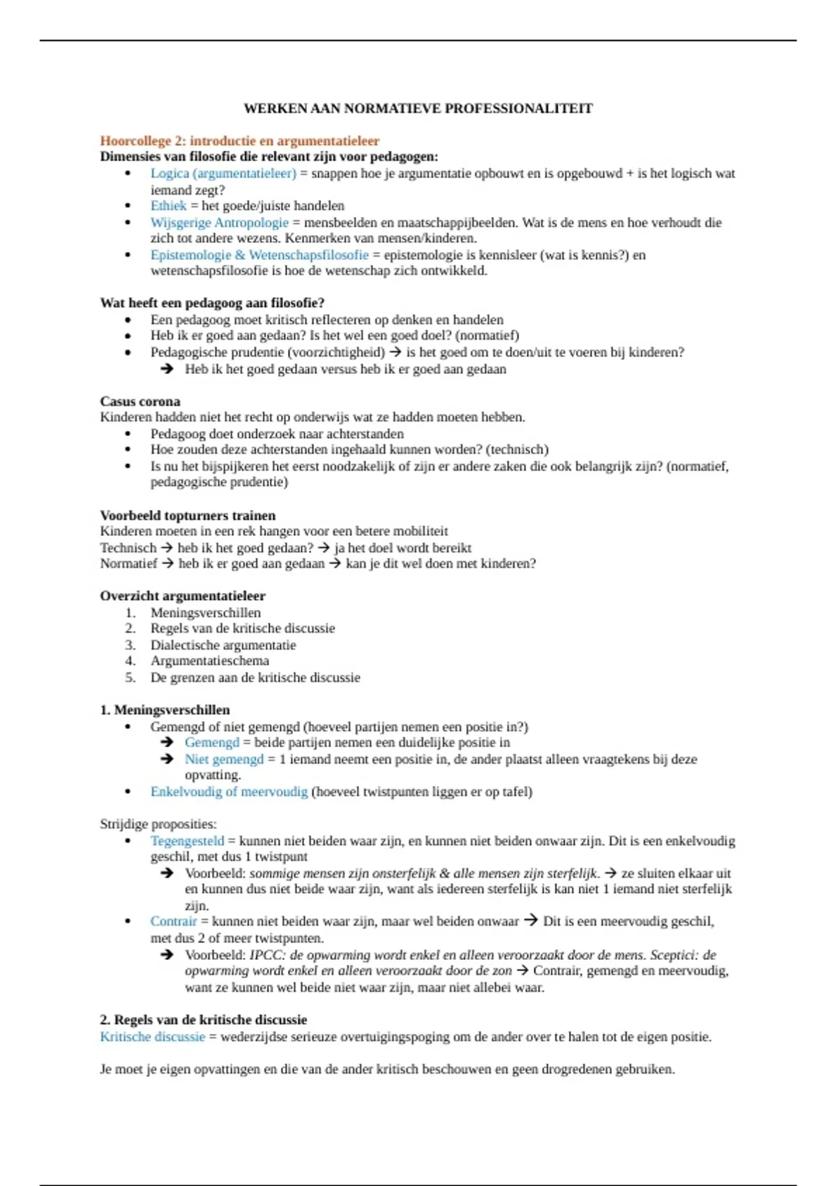 Hoorcollege 2: introductie en argumentatieleer