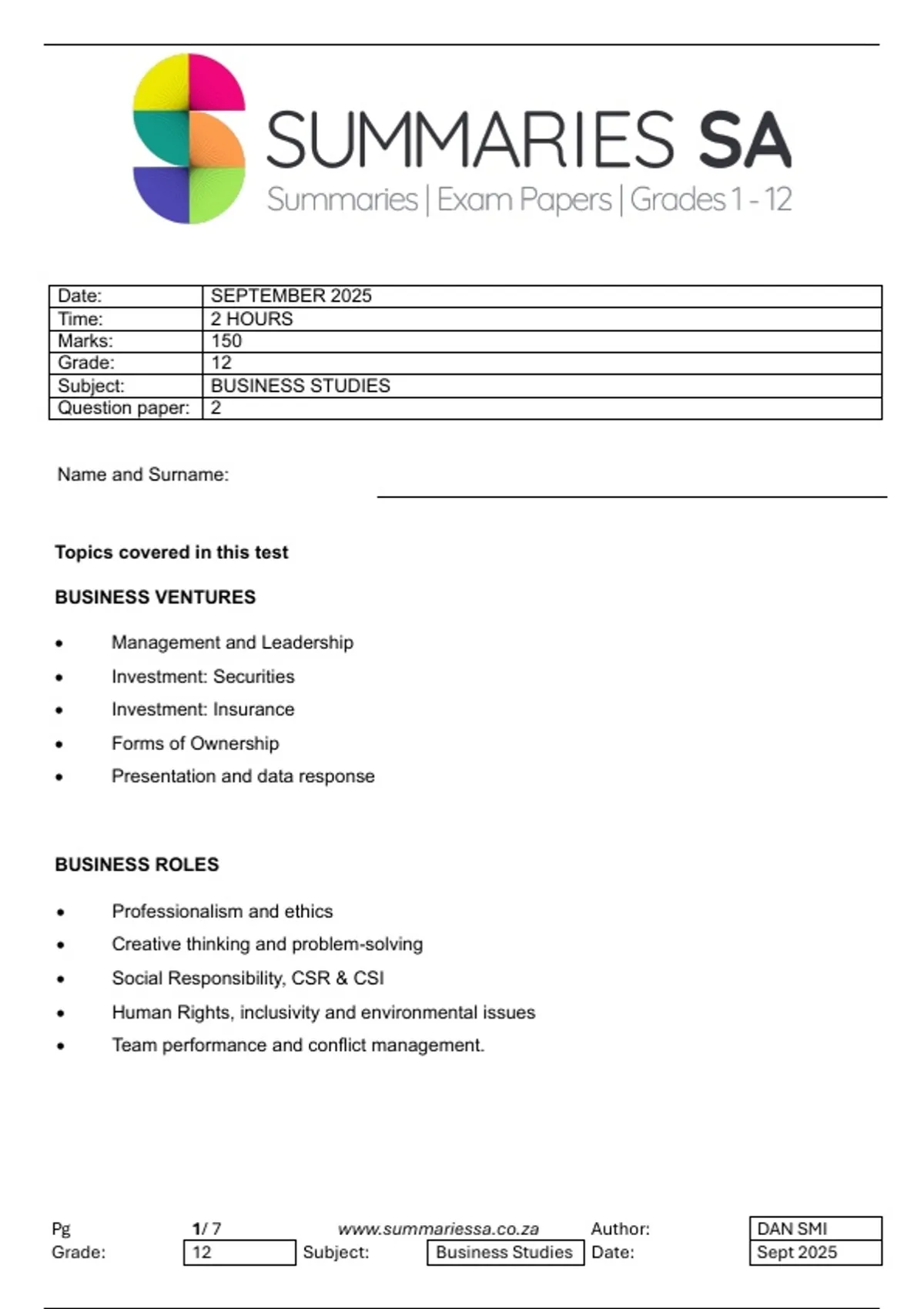 Pg 2/ 7 www.summariessa.co.za Author: DAN SMI