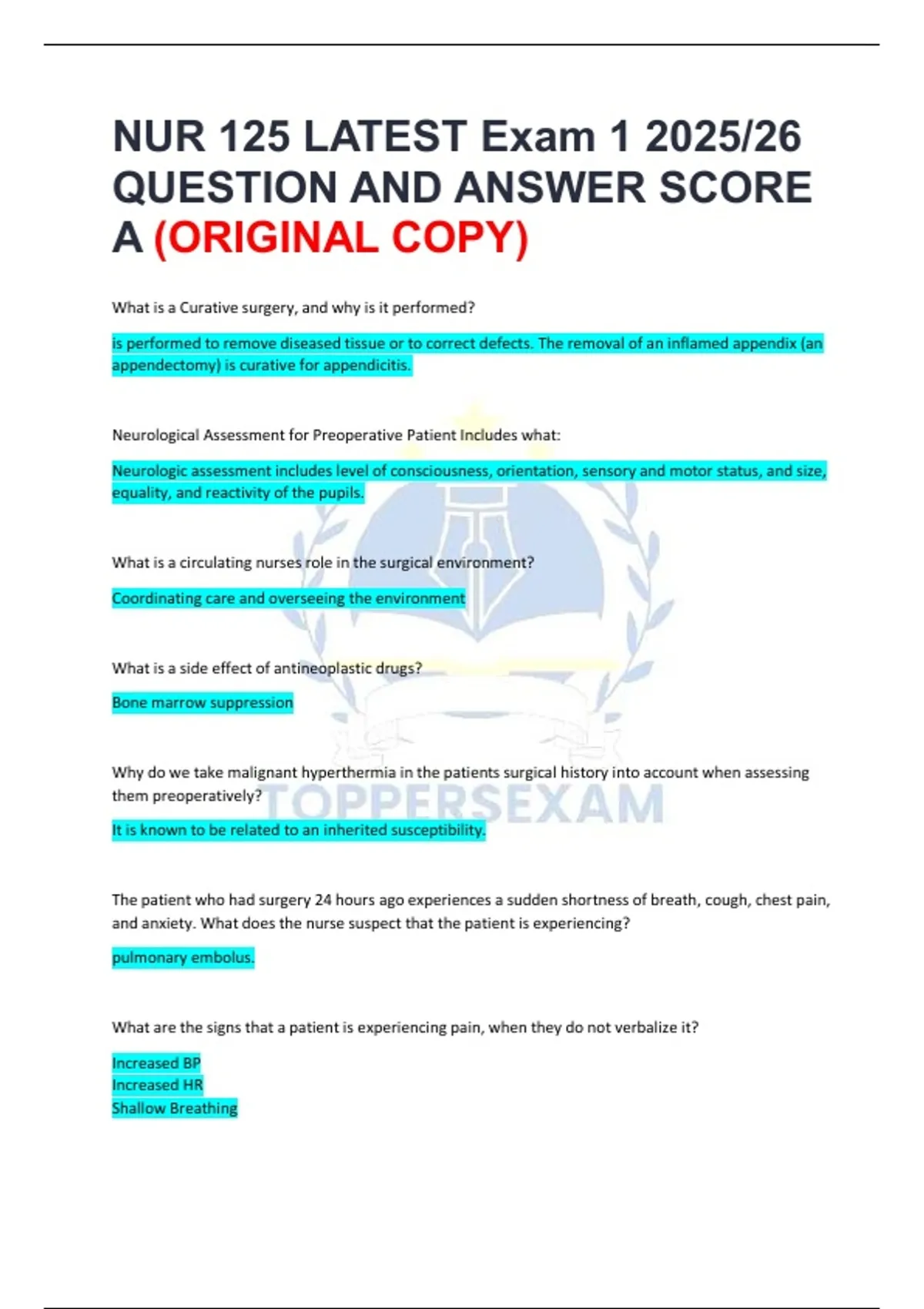 NUR 125 LATEST Exam 1 2025/26