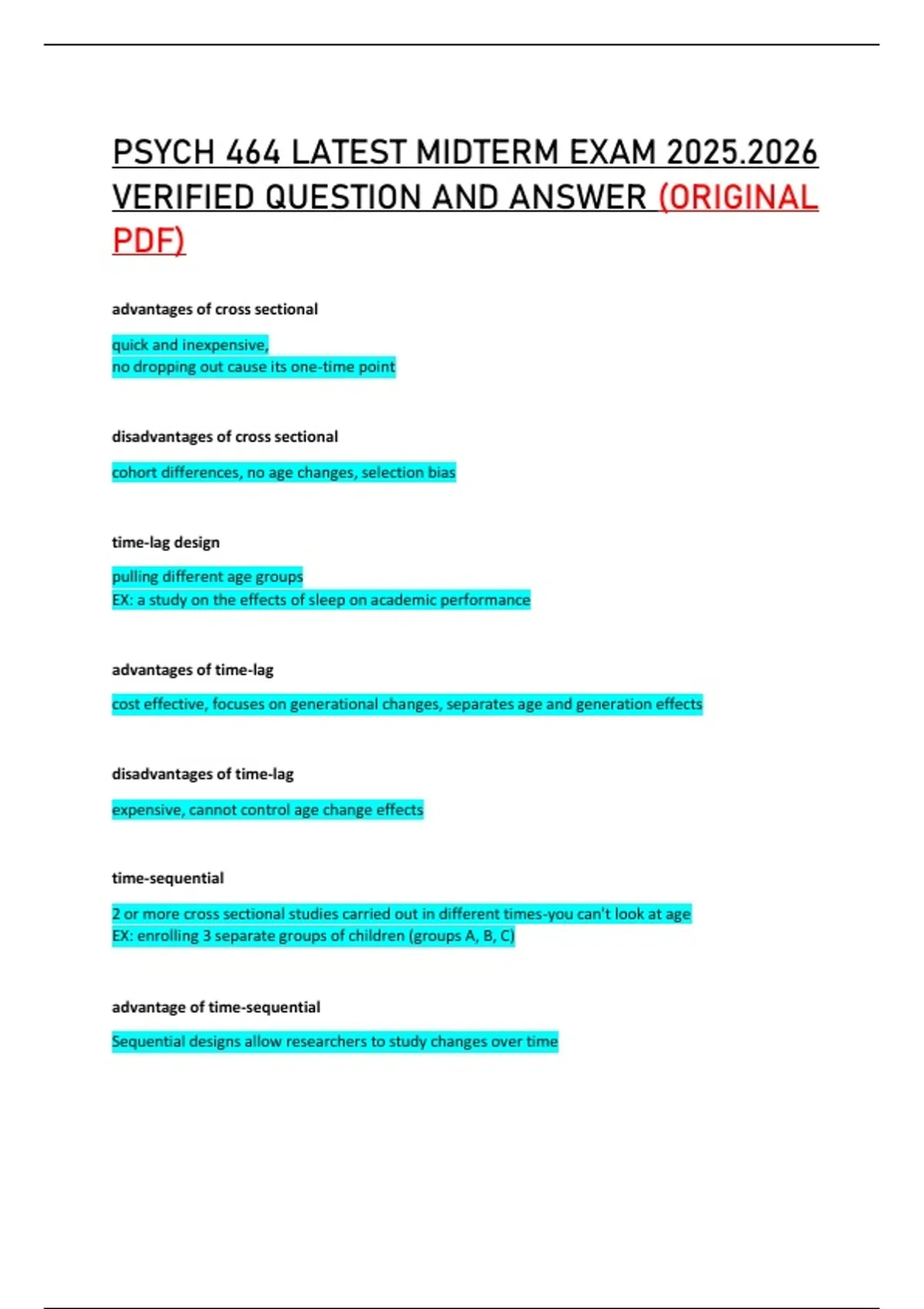 PSYCH 464 LATEST MIDTERM EXAM 2025.2026 VERIFIED QUESTION AND ANSWER (ORIGINAL PDF)