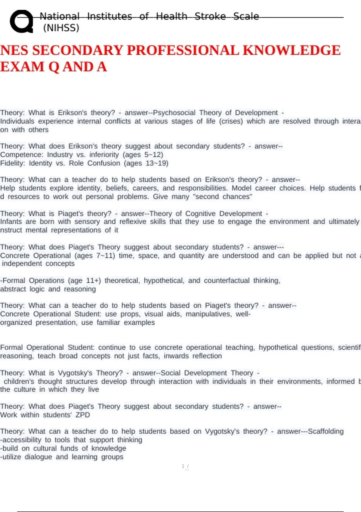 NES SECONDARY PROFESSIONAL KNOWLEDGE