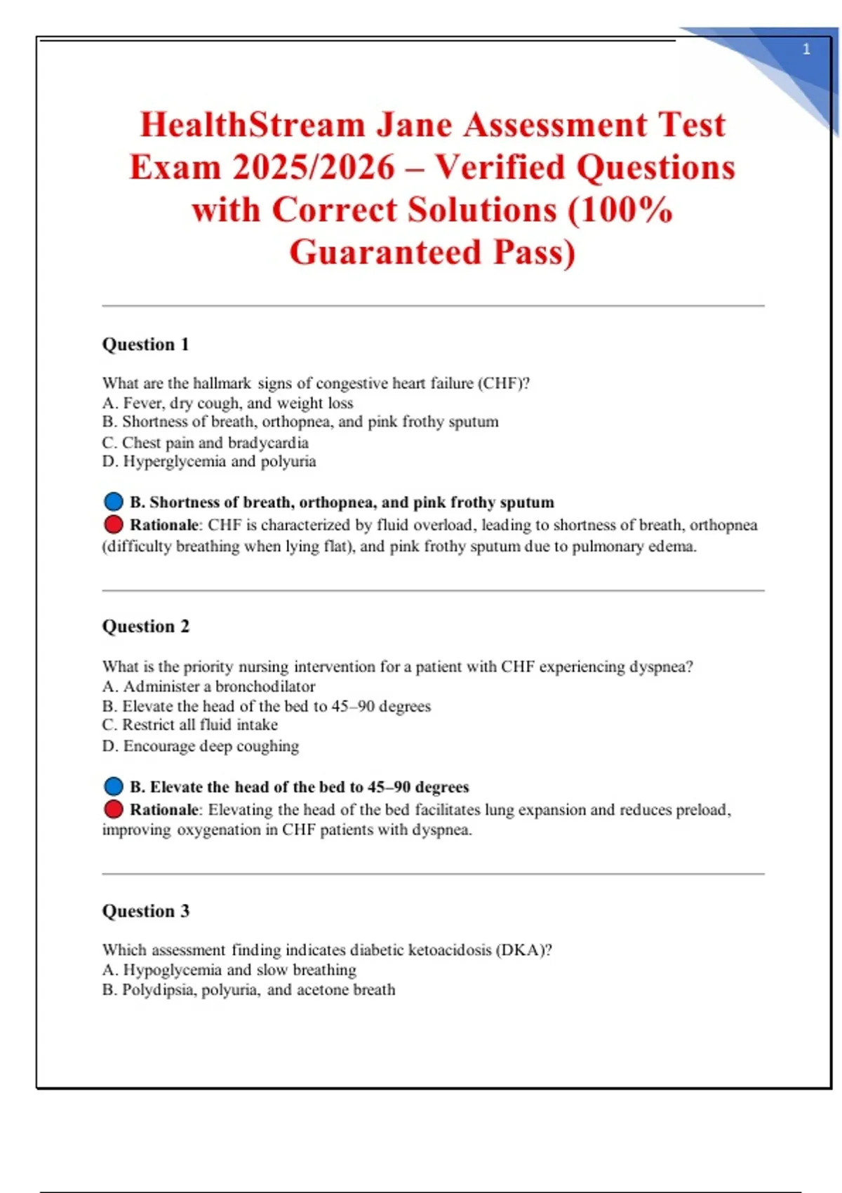 Rationale: CHF is characterized by fluid overload, leading to shortness of breath, orthopnea