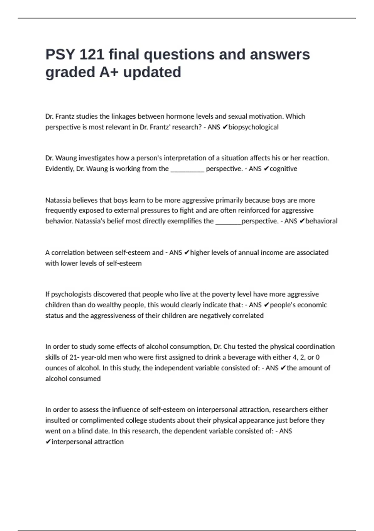 Evidently, Dr. Waung is working from the _________ perspective. - ANS ✔cognitive