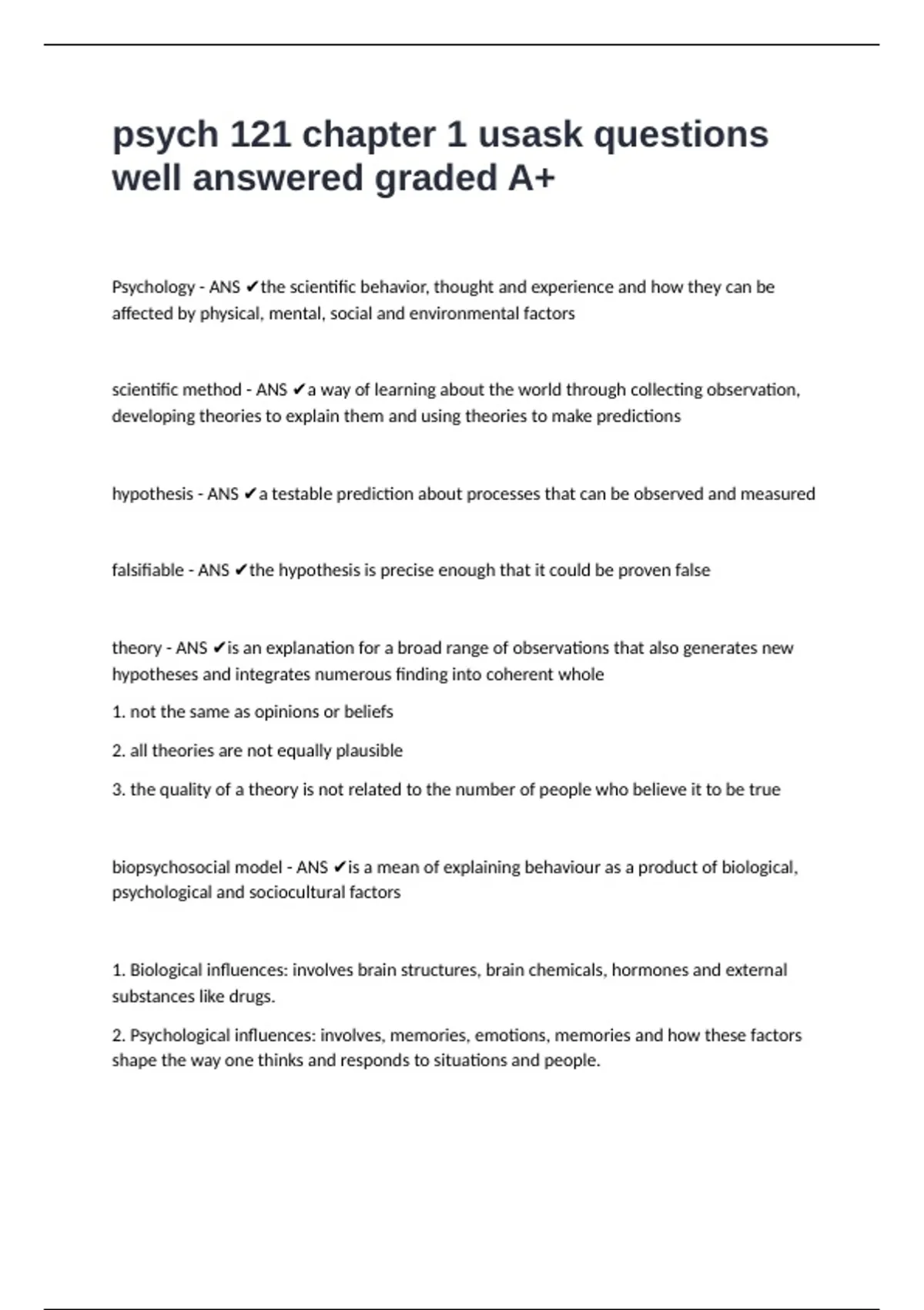 biopsychosocial model - ANS ✔is a mean of explaining behaviour as a product of biological,