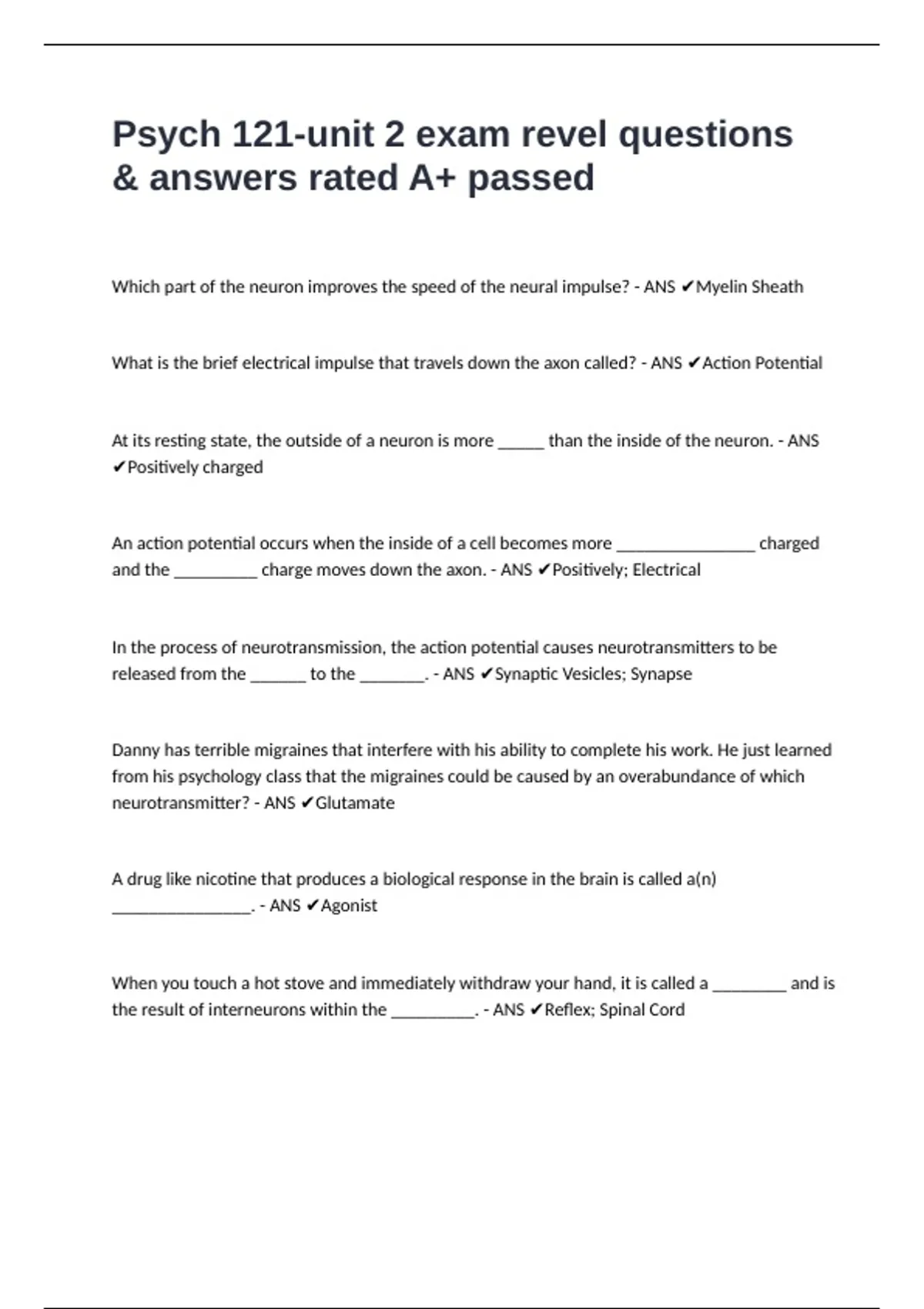 Psych 121-unit 2 exam revel questions & answers rated A+ passed
