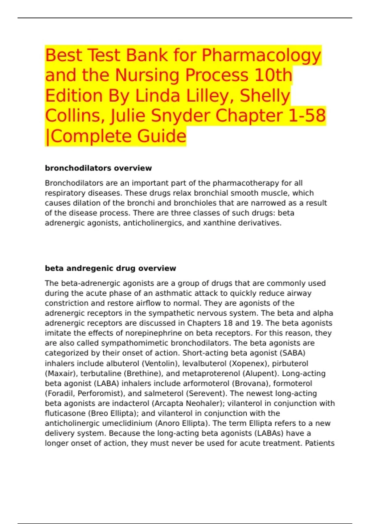 Test Bank for Pharmacology and the Nursing Process 10th Edition By Linda Lilley, Shelly Collins, Julie Snyder Chapter 1-58 |Complete Guide