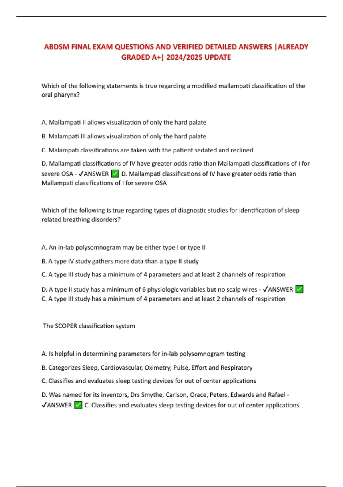 severe OSA - ✔ANSWER D. Mallampati classifications of IV have greater odds ratio than