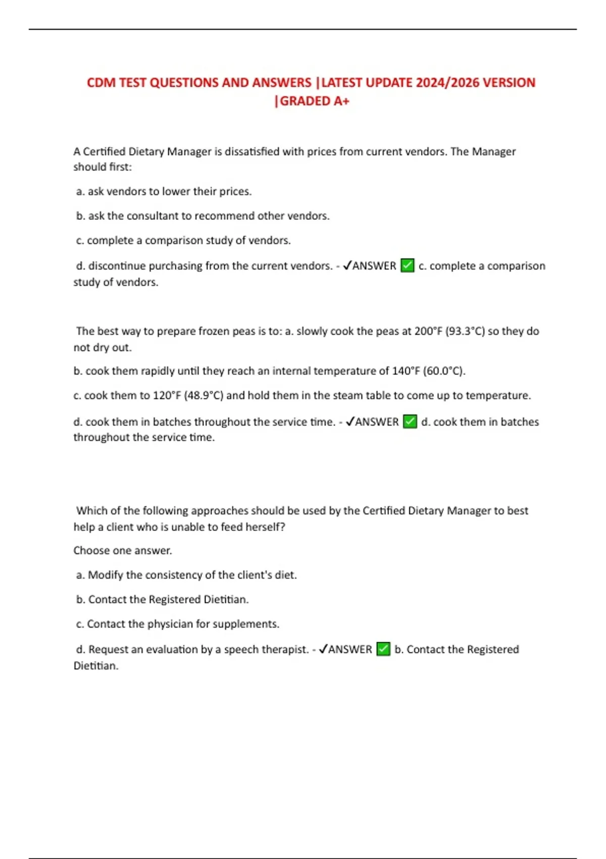 CDM TEST QUESTIONS AND ANSWERS |LATEST UPDATE 2024/2026 VERSION |GRADED A+