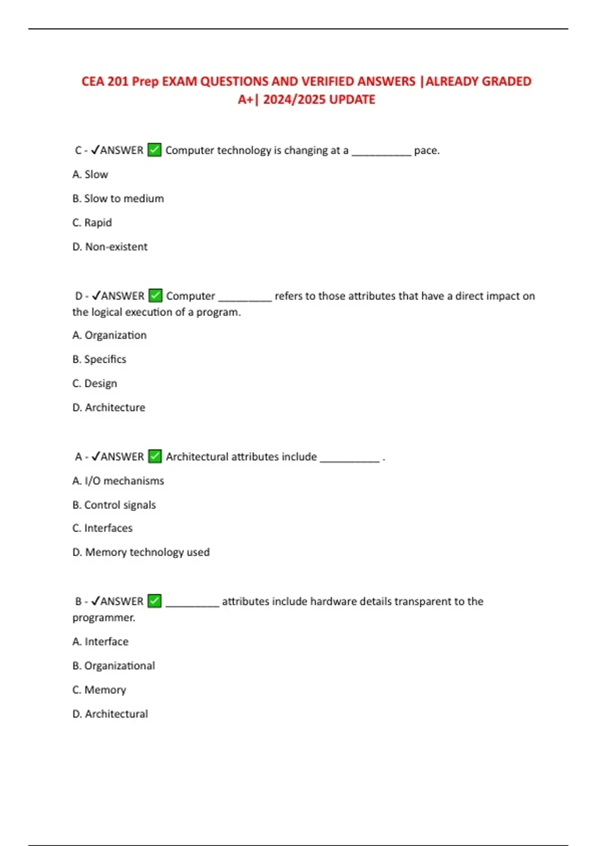 C - ✔ANSWER Computer technology is changing at a __________ pace.