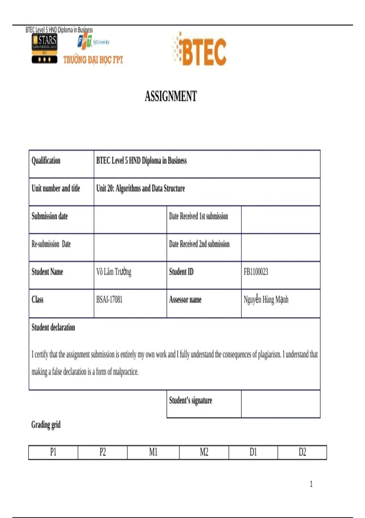 Class BSAI-17081 Assessor name Nguyễn Hùng Mạnh