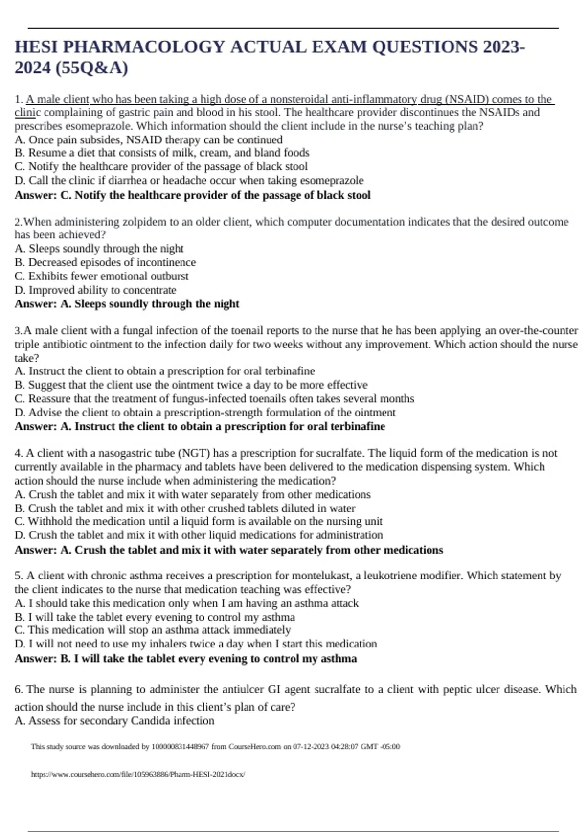 , HESI PHARMACOLOGY ACTUAL EXAM QUESTIONS 2023-