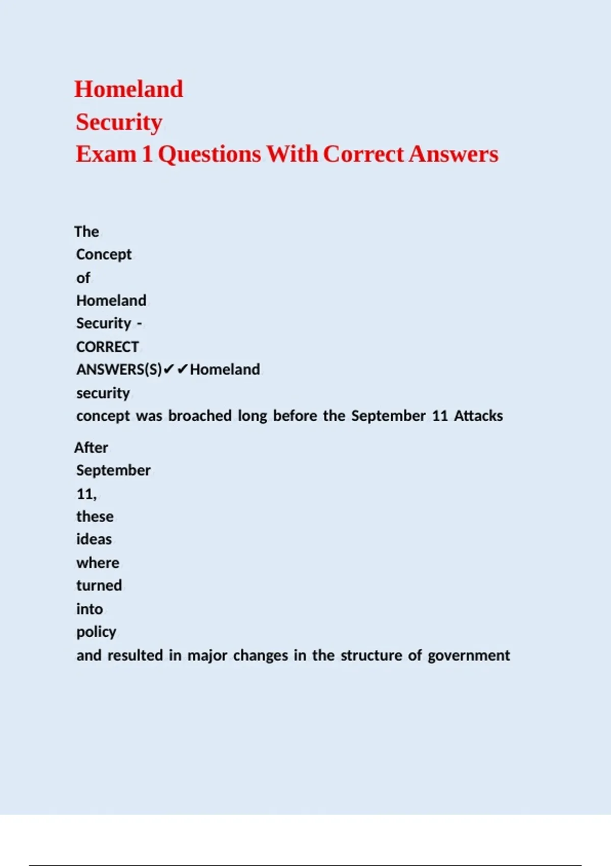 HS - CORRECT ANSWERS(S)✔✔Prevent Terrorism / Enhance Security