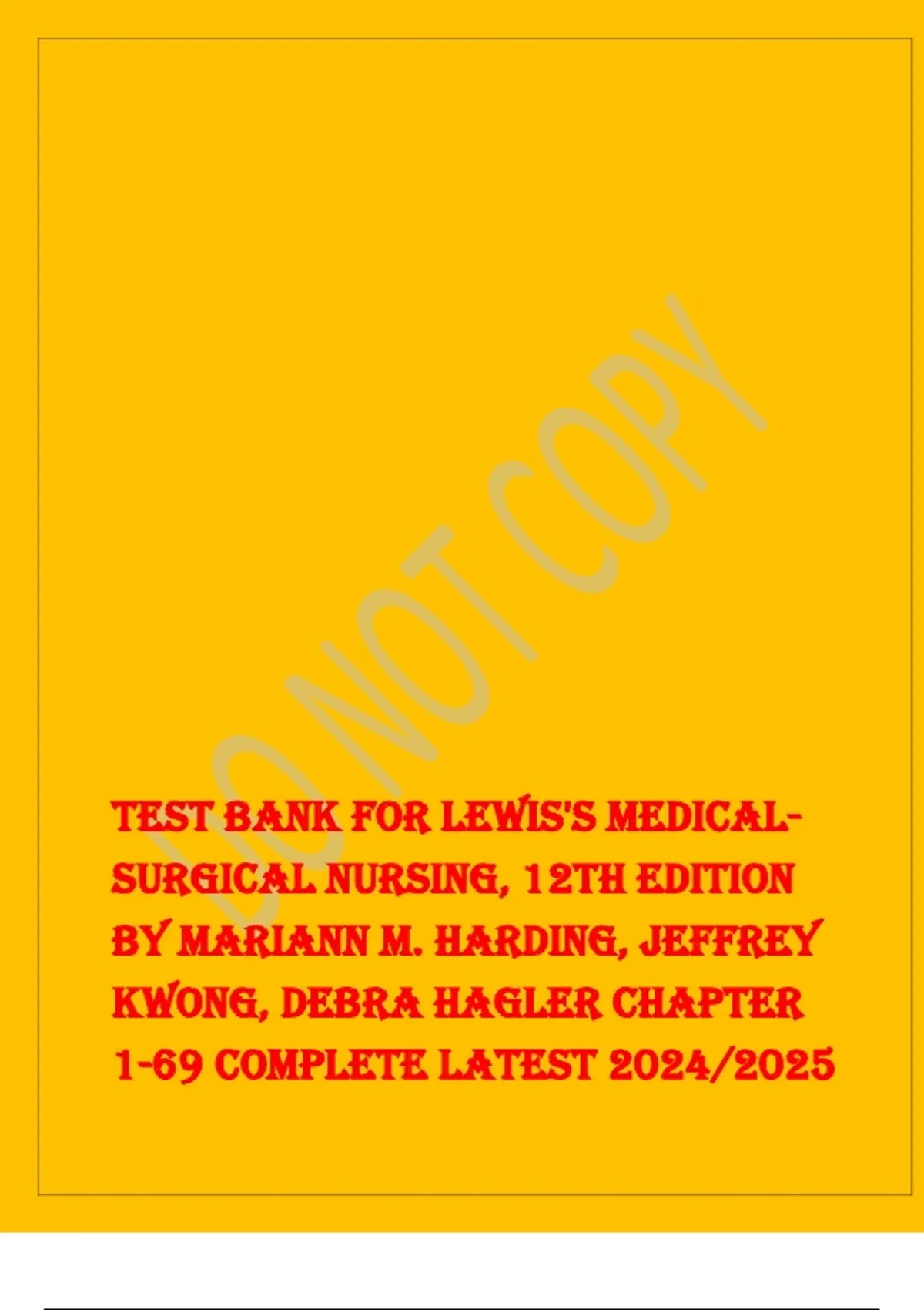 Test Bank For Lewis's Medical- Surgical Nursing, 12th Edition by Mariann M. Harding, Jeffrey Kwong, Debra Hagler Chapter 1-69 Complete Latest 2024/2025