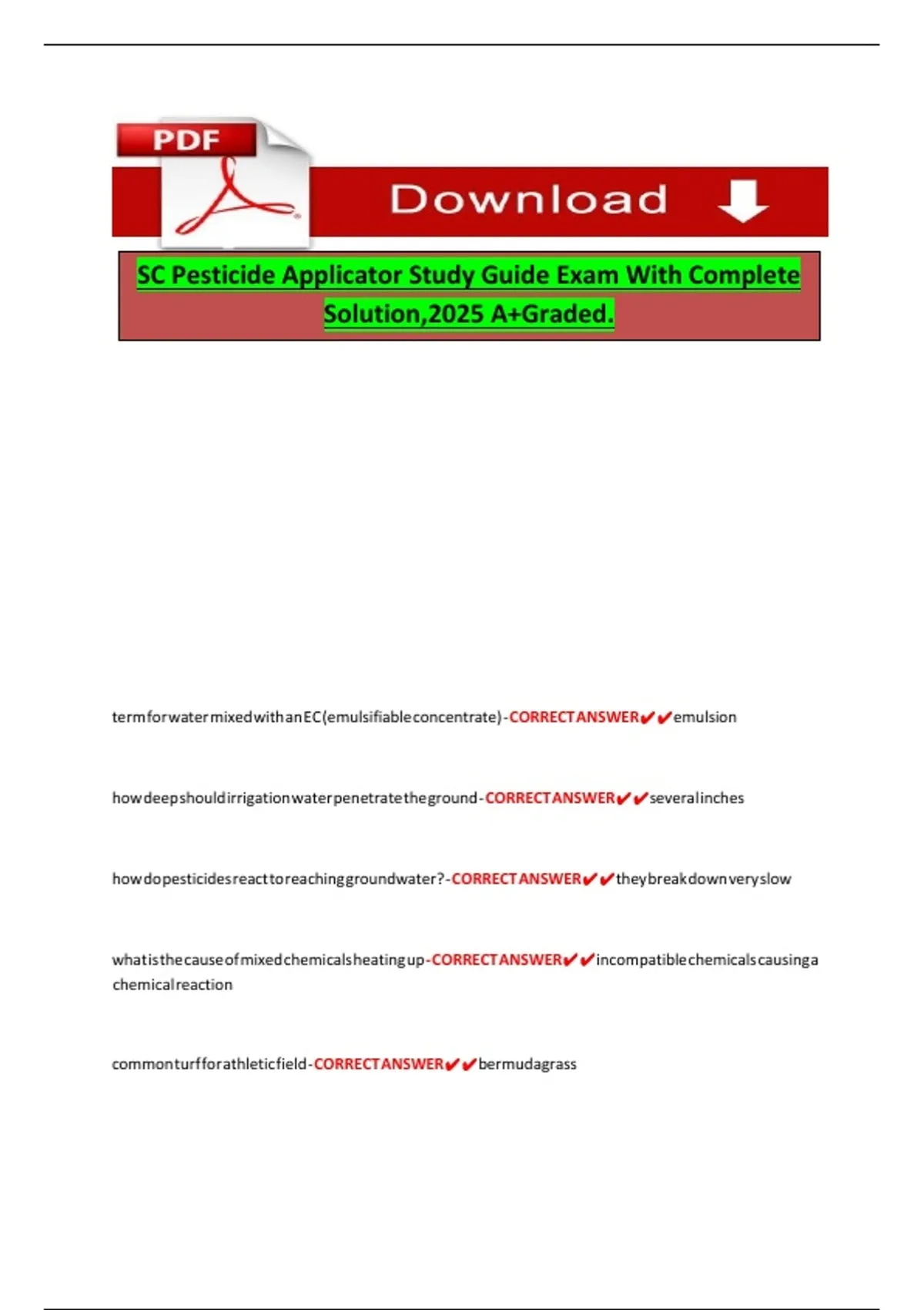 SC Pesticide Applicator Study Guide Exam With Complete Solution,2025 A+Graded.