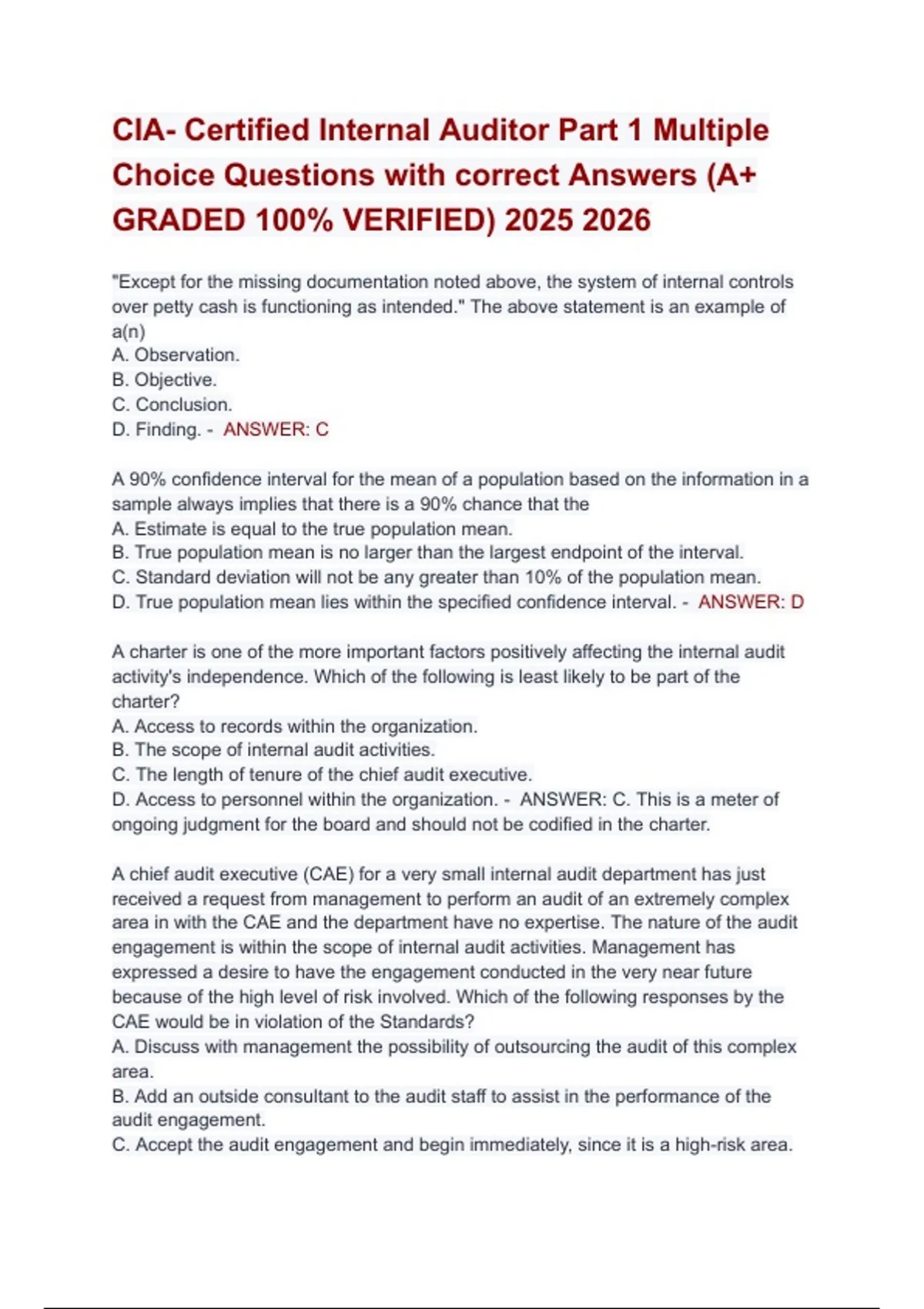 CIA- Certified Internal Auditor Part 1 Multiple
