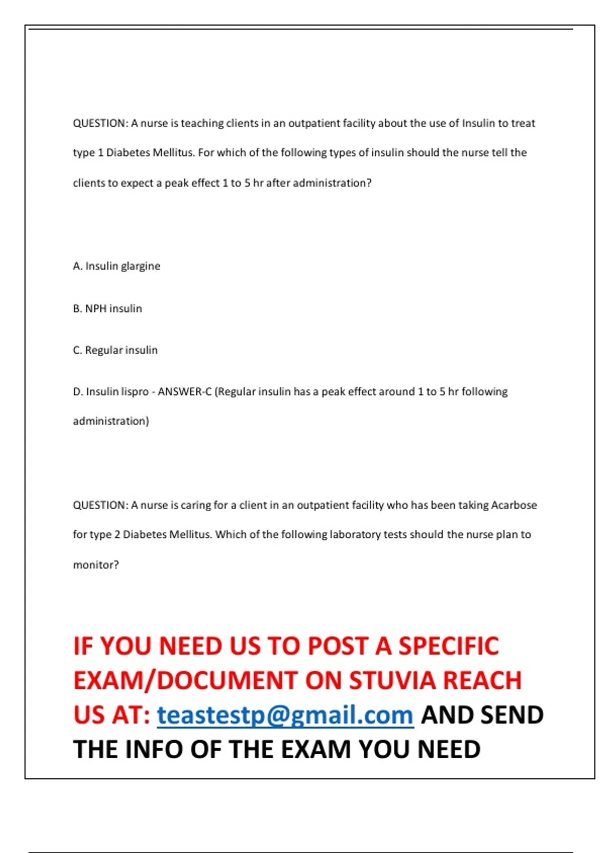 QUESTION: A nurse is teaching clients in an outpatient facility about the use of Insulin to treat