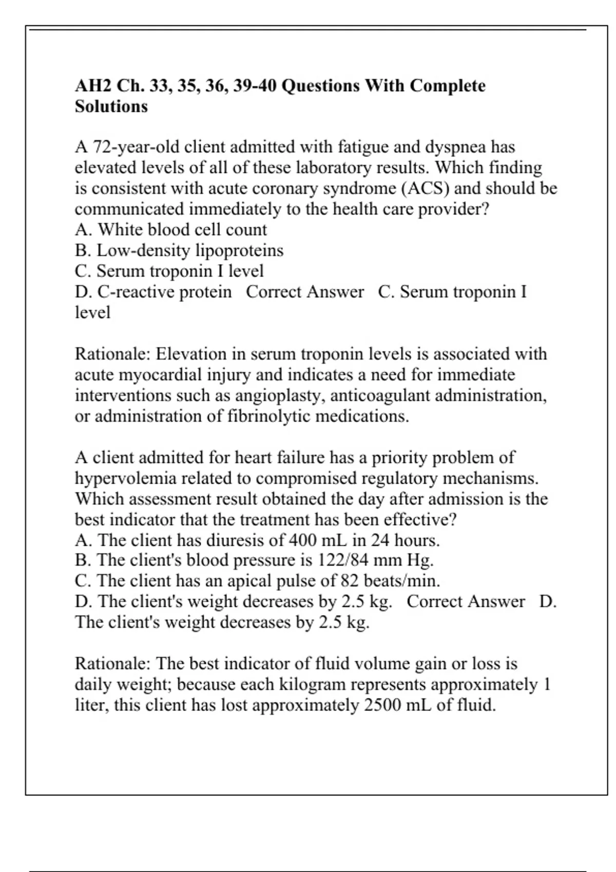 D. C-reactive protein Correct Answer C. Serum troponin I