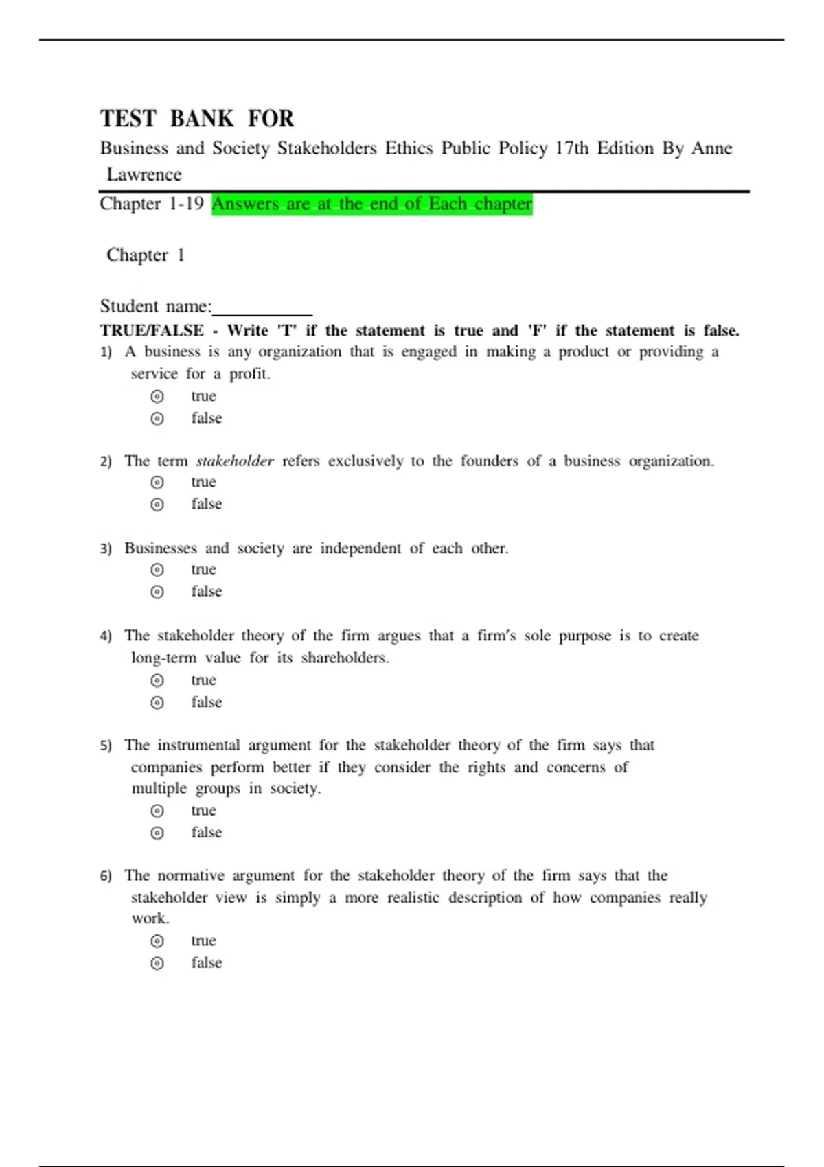 Business and Society Stakeholders Ethics Public Policy 17th Edition By Anne