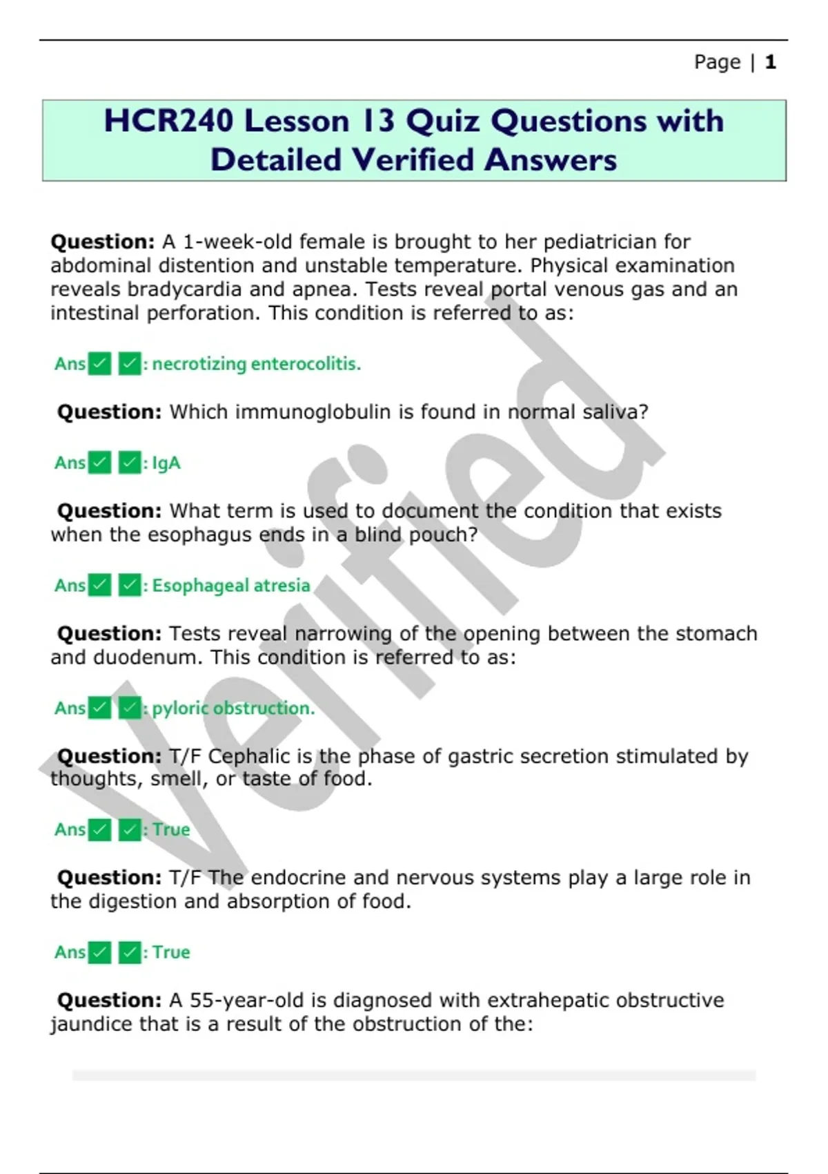 HCR240 Lesson 13 Quiz Questions with Detailed Verified Answers