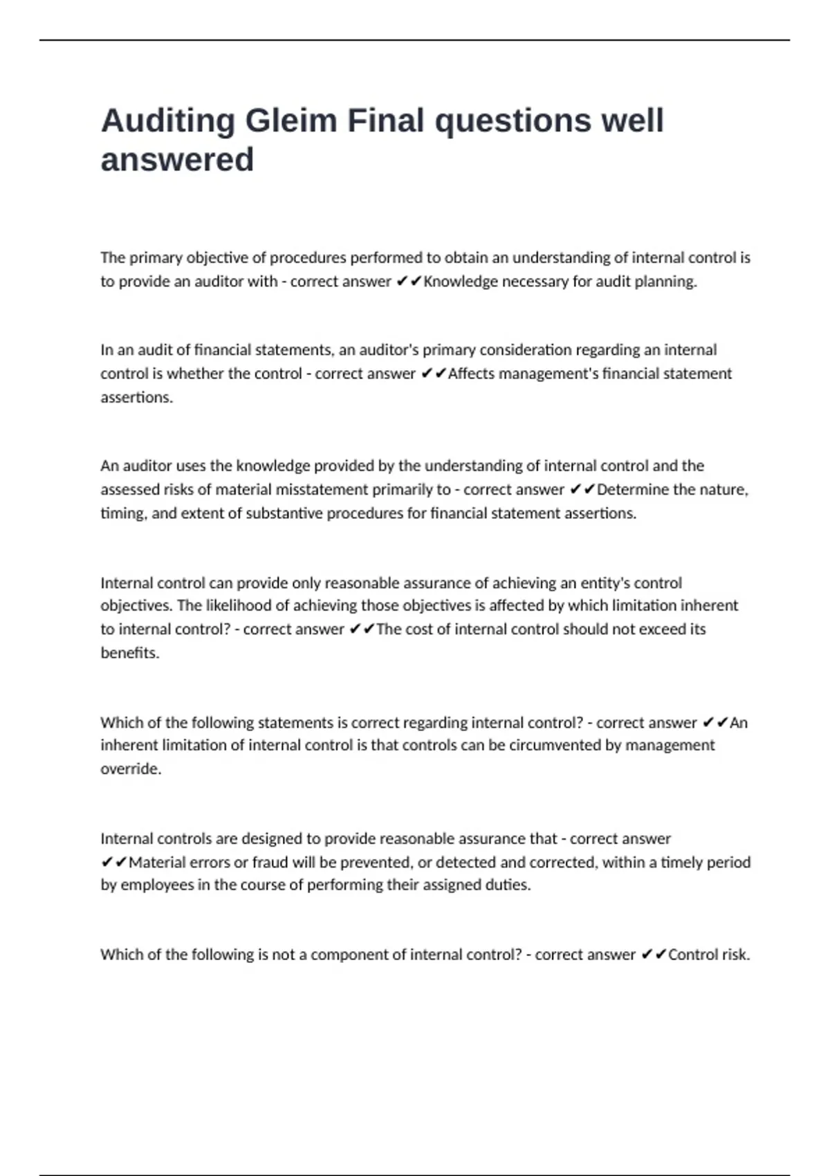 Which of the following statements is correct regarding internal control? - correct answer ✔✔An