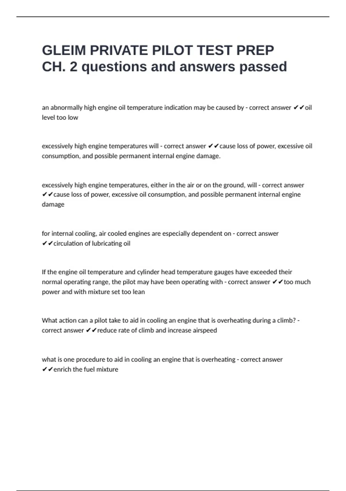 excessively high engine temperatures will - correct answer ✔✔cause loss of power, excessive oil