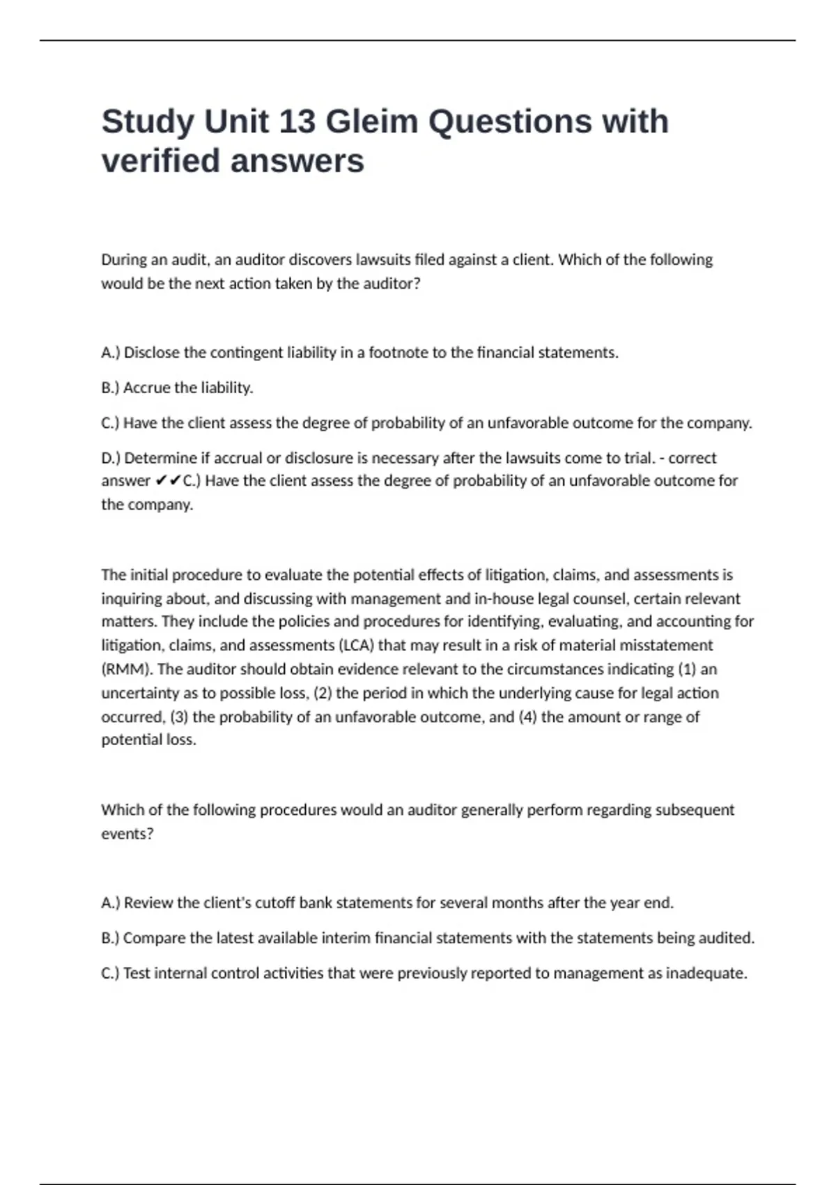 counsel has advised are probable of assertion and must be disclosed. - correct answer ✔✔A.)