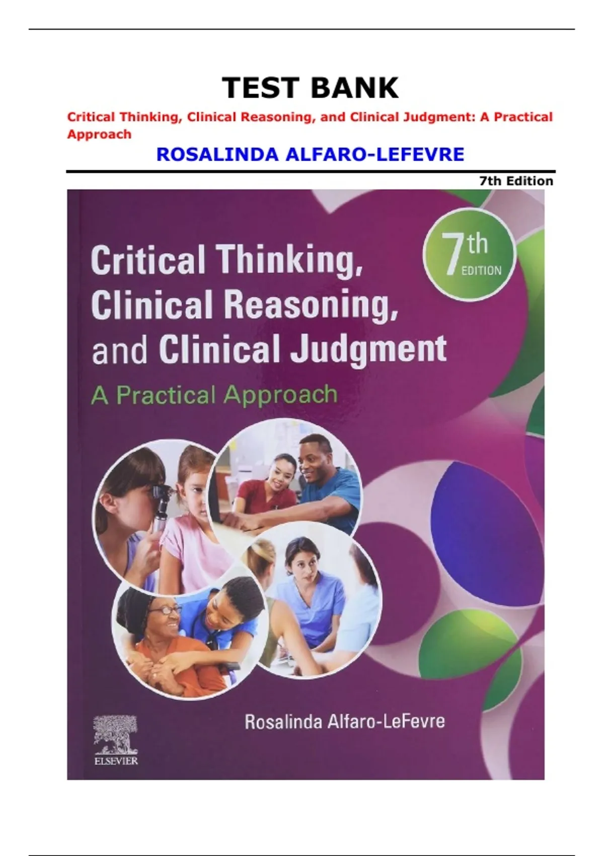 Download the Test Bank for Critical Thinking, Clinical Reasoning, and Clinical Judgment: A Practical Approach, 7th Edition by Rosalinda Alfaro-Lefevre. This Stuvia resource provides verified nursing exam questions and study solutions, helping students enhance clinical reasoning, critical thinking, and safe decision-making for academic and professional success.
