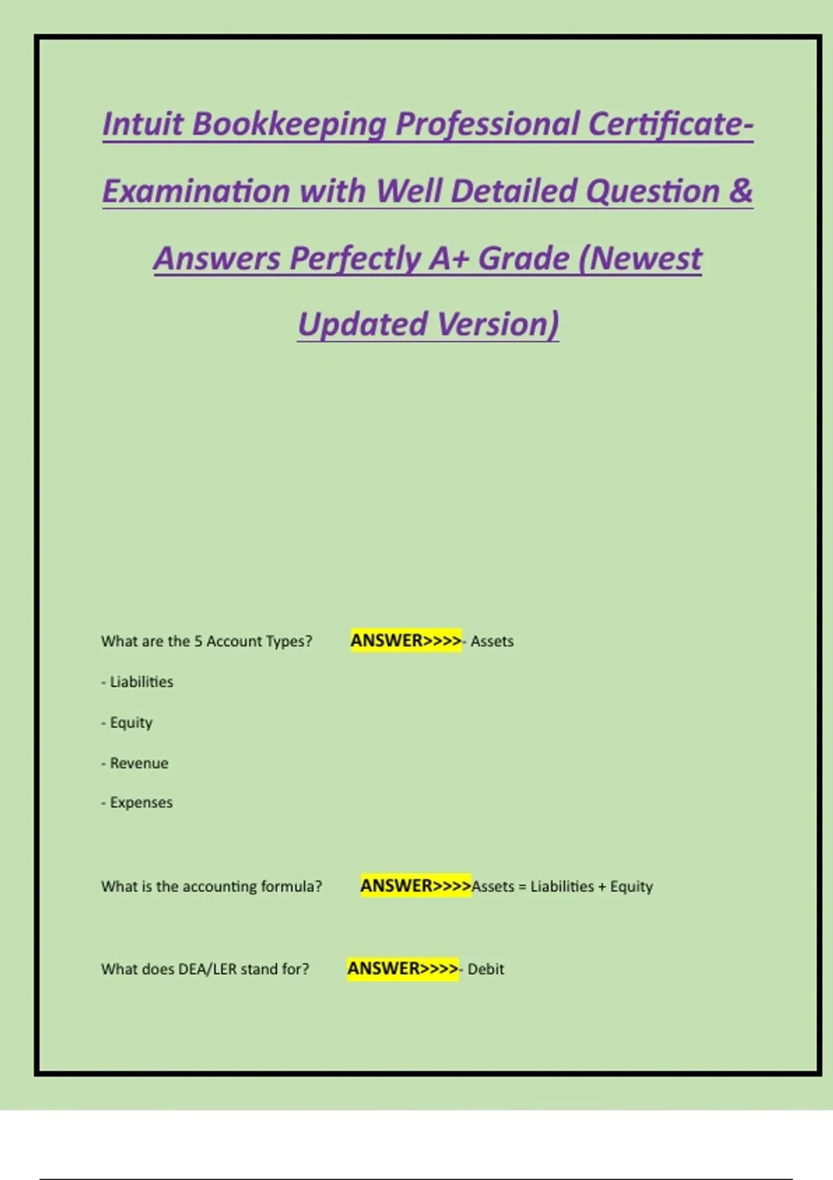 What are the 5 Account Types? ANSWER>>>>- Assets