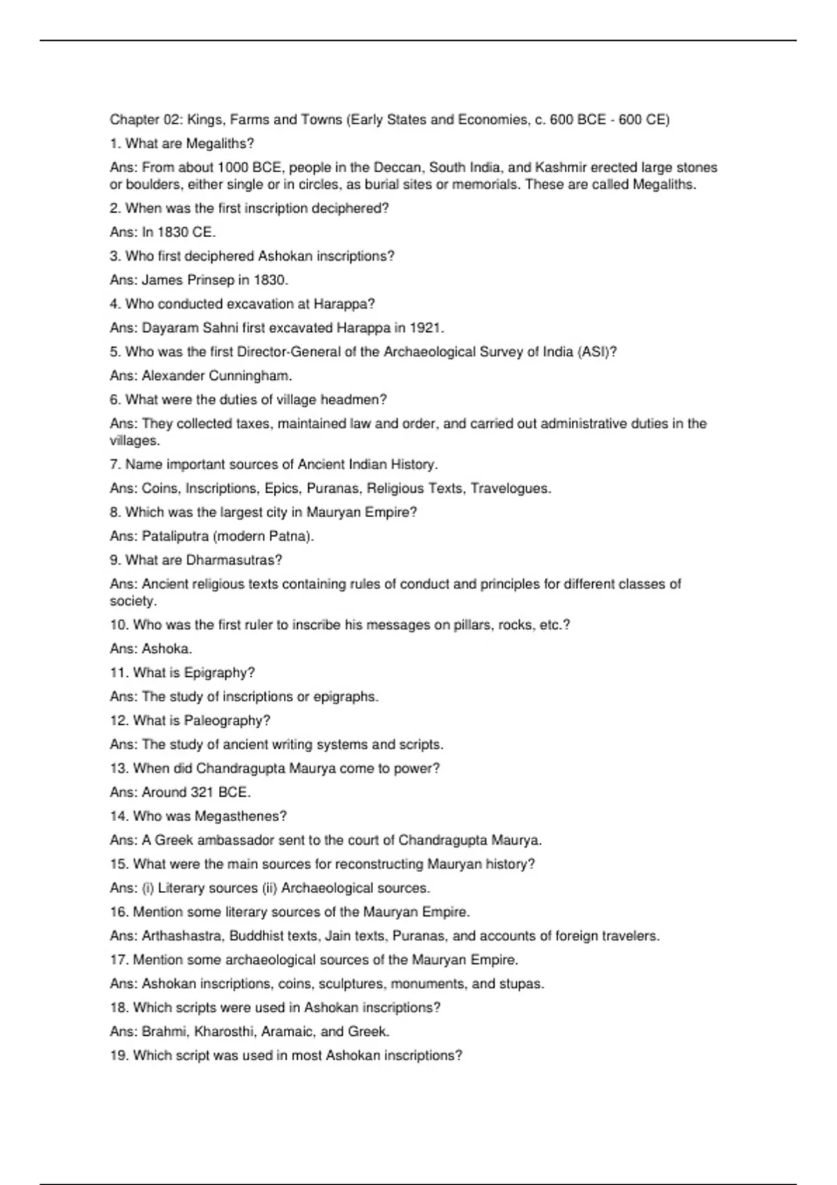 Ans: Arthashastra, Buddhist texts, Jain texts, Puranas, and accounts of foreign travelers.