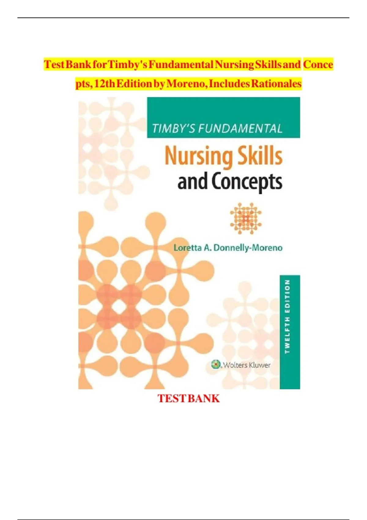 Test Bank for Timby's Fundamental Nursing Skills and Concepts, 12th Edition by Loretta A Donnelly-Moreno, All Chapters 1 - 38, Verified Newest Version