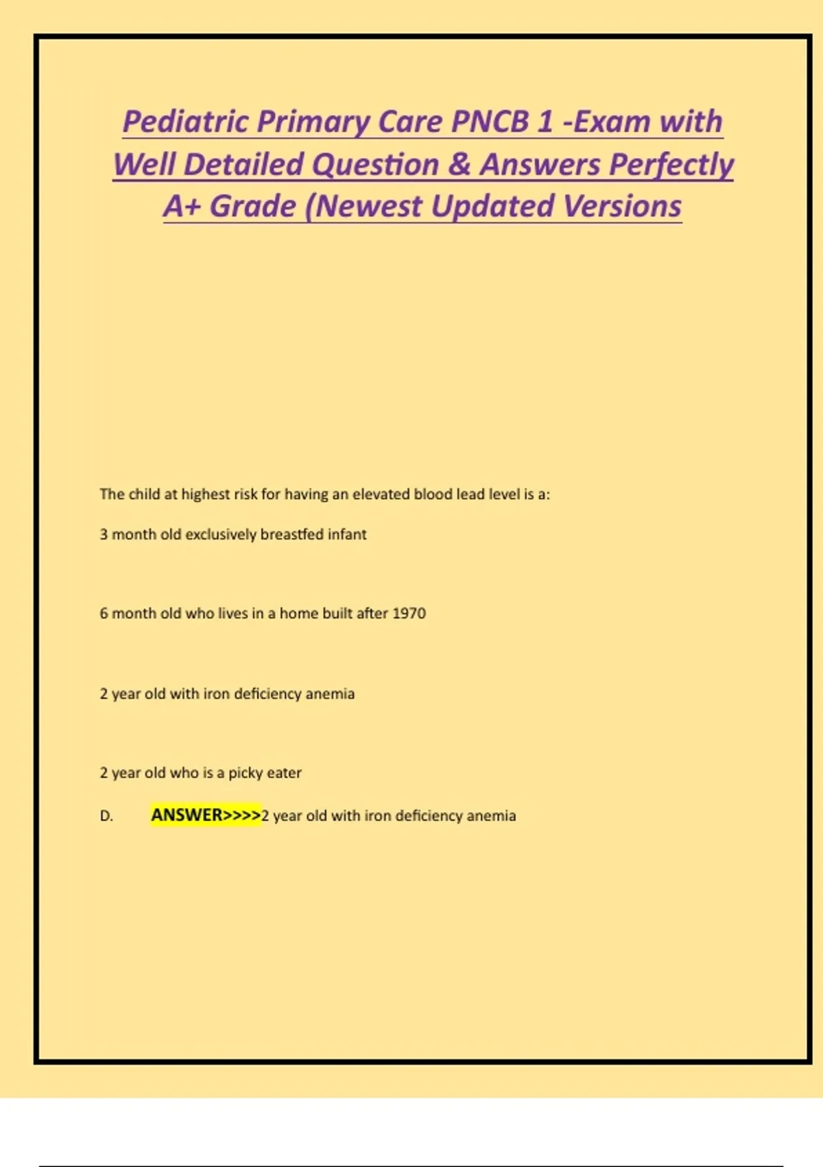 Pediatric Primary Care PNCB 1 -Exam with