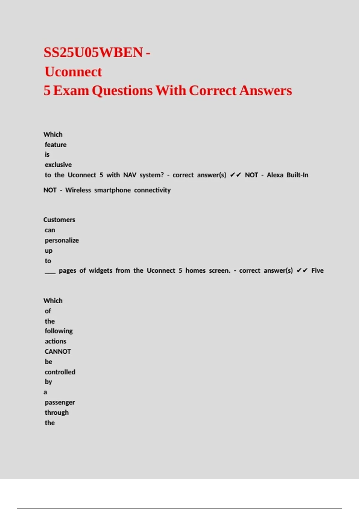 SS25U05WBEN - Uconnect 5 Exam Questions With Correct Answers.