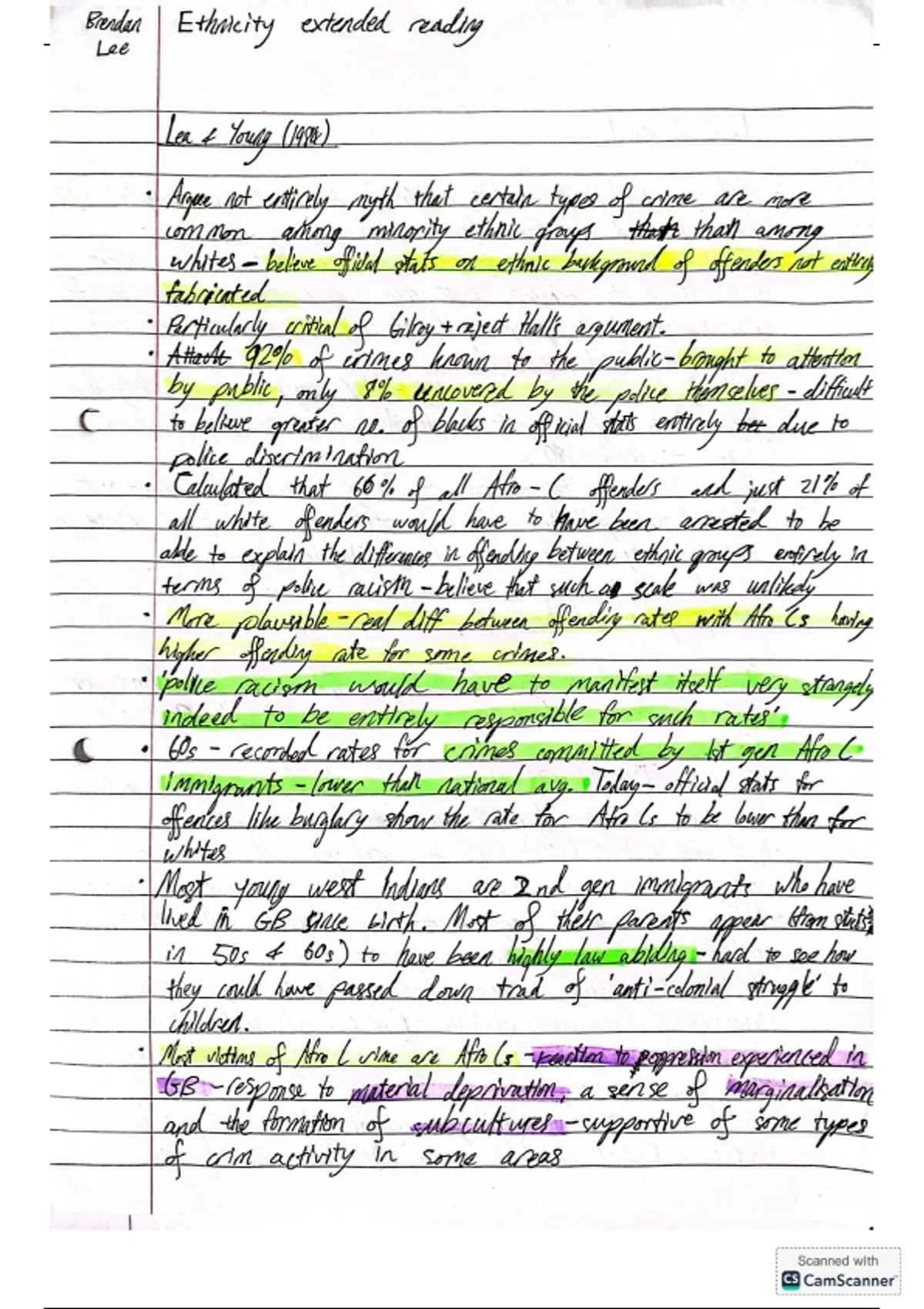 Summary Ethnicity and Crime notes: A level Sociology Unit 3 WJEC