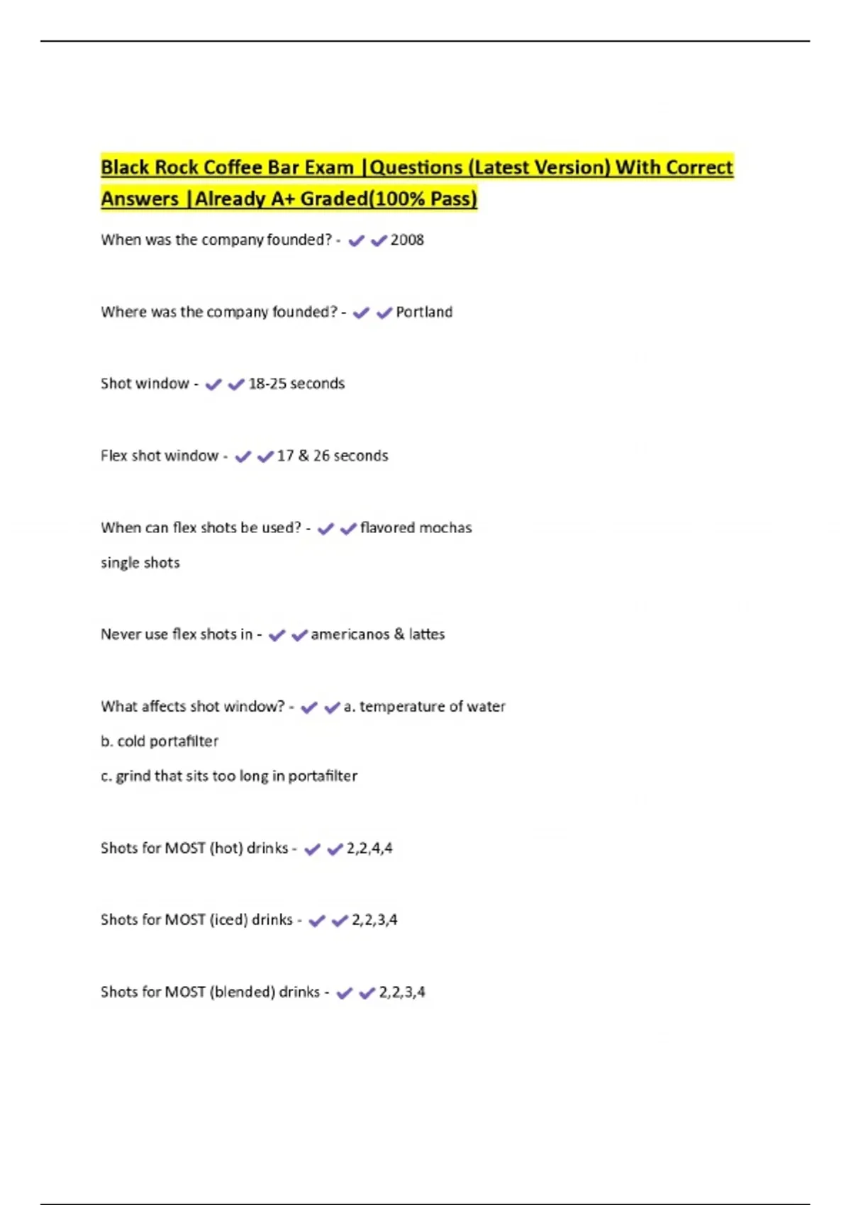 Black Rock Coffee Bar Exam |Questions (Latest Version) With Correct Answers |Already A+ Graded(100% Pass)