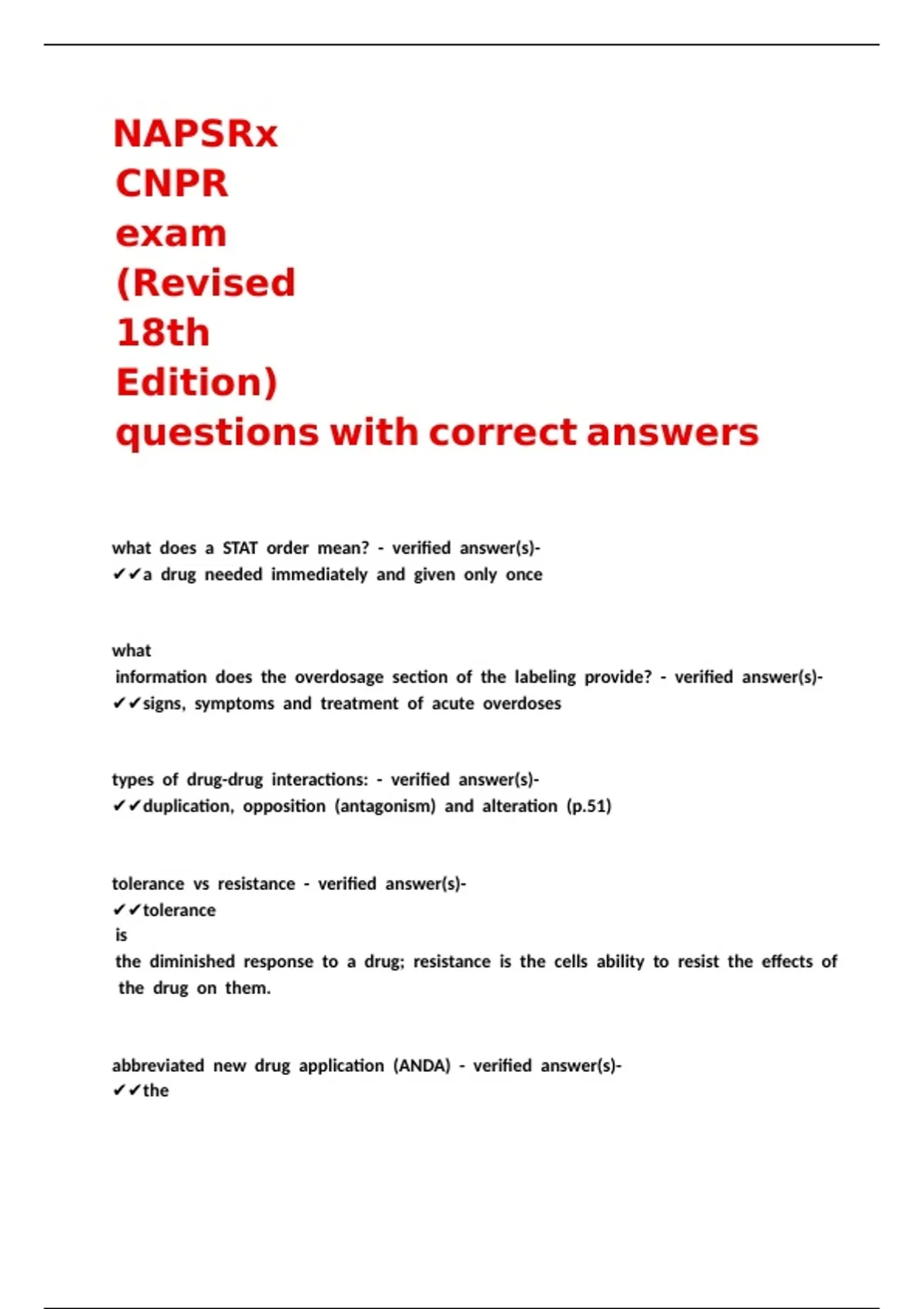 NAPSRx CNPR exam (Revised 18th Edition) questions with correct answers ,