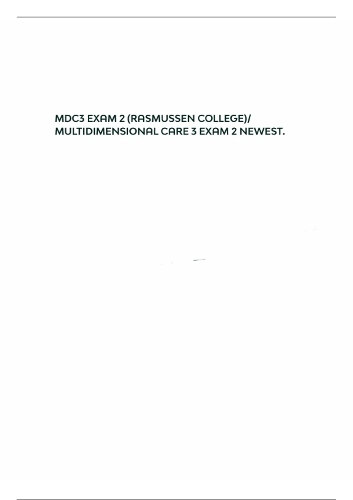 MDC3 EXAM 2 (RASMUSSEN MULTIDIMENSIONAL CARE 3 EXAM 2 NEWEST