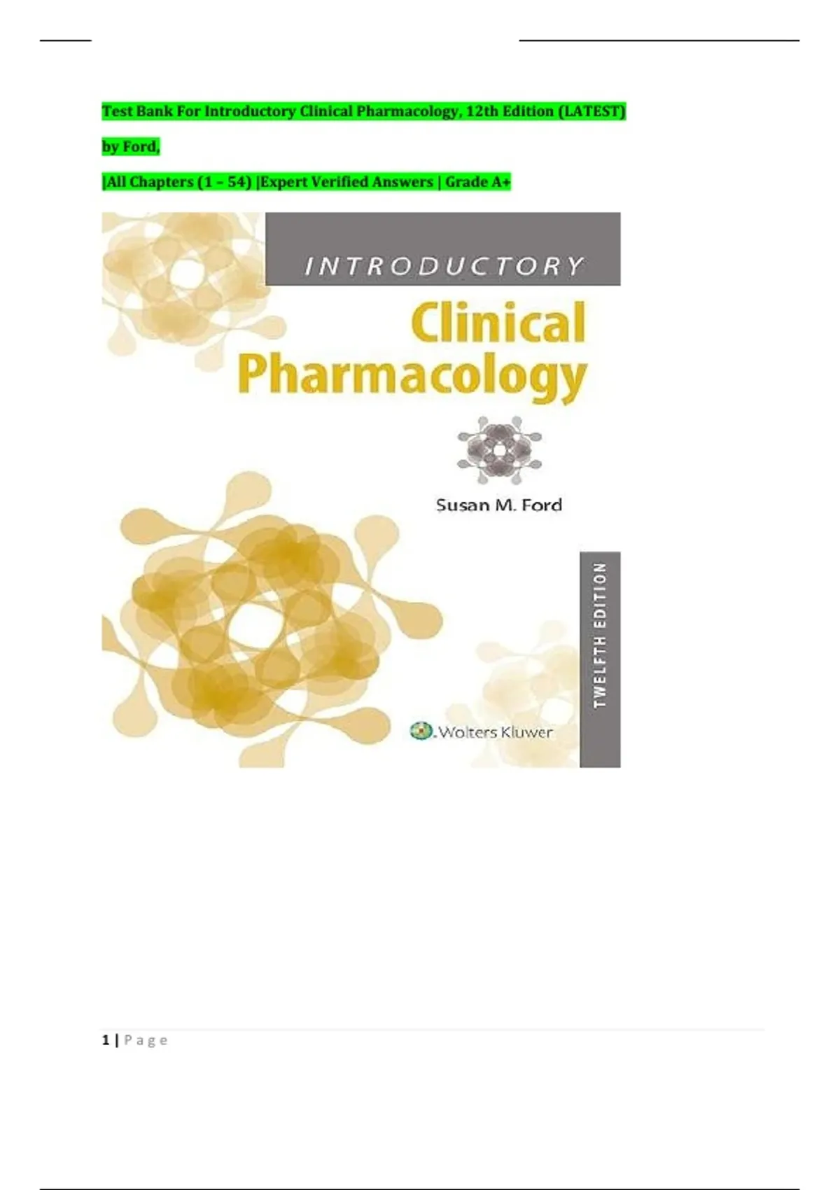 Test Bank For Introductory Clinical Pharmacology, 12th Edition (LATEST)