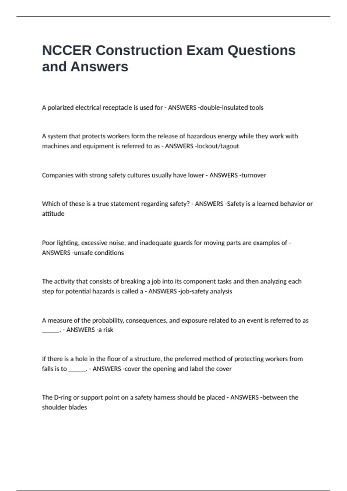 NCCER Construction Exam Questions and Answers