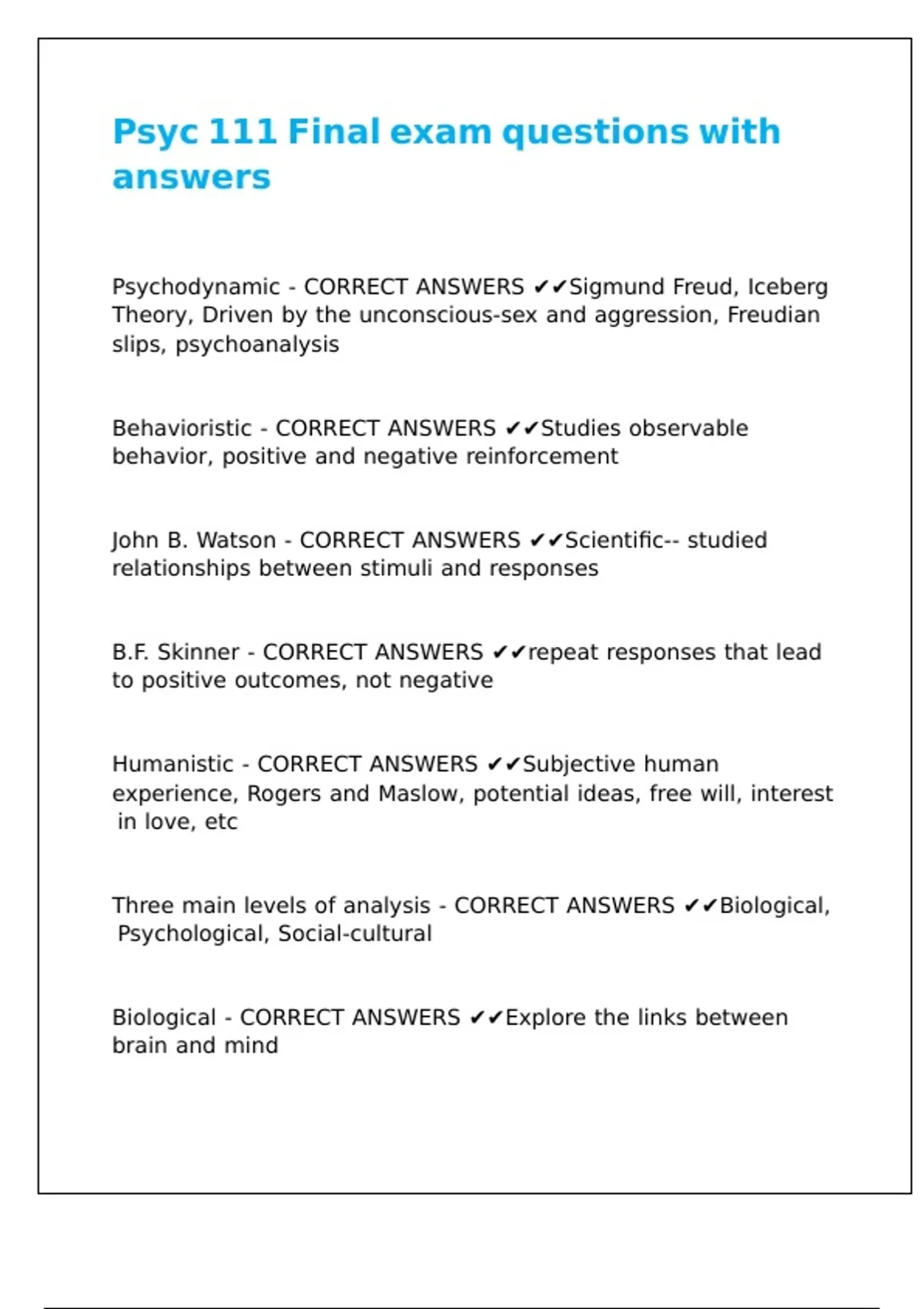 Behavioristic - CORRECT ANSWERS ✔✔Studies observable |\ |\ |\ |\ |\ |\